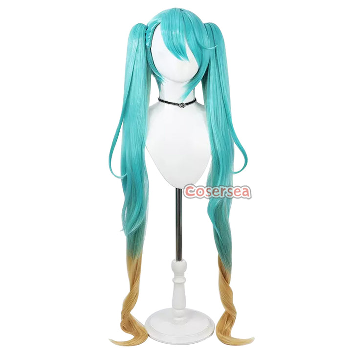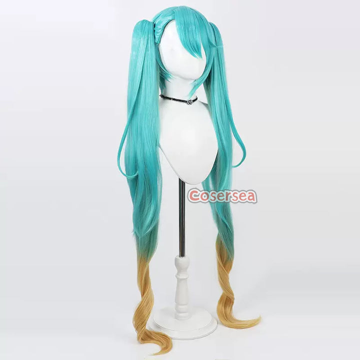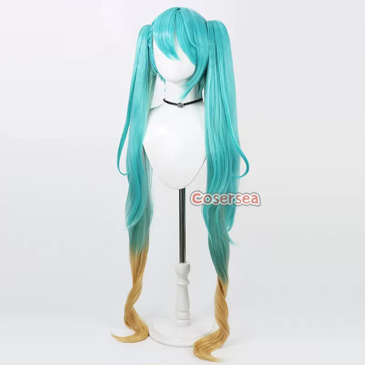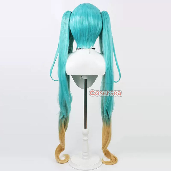 100cm Long Wavy Blue Gradient Orange Brown Ponytail Cosplay Wigs