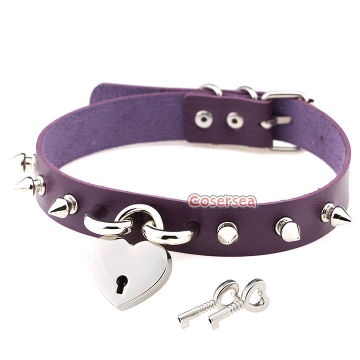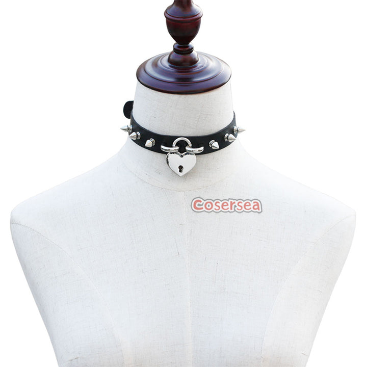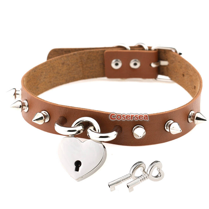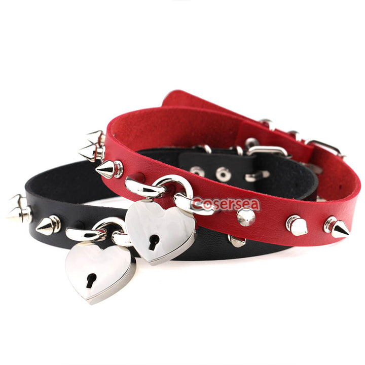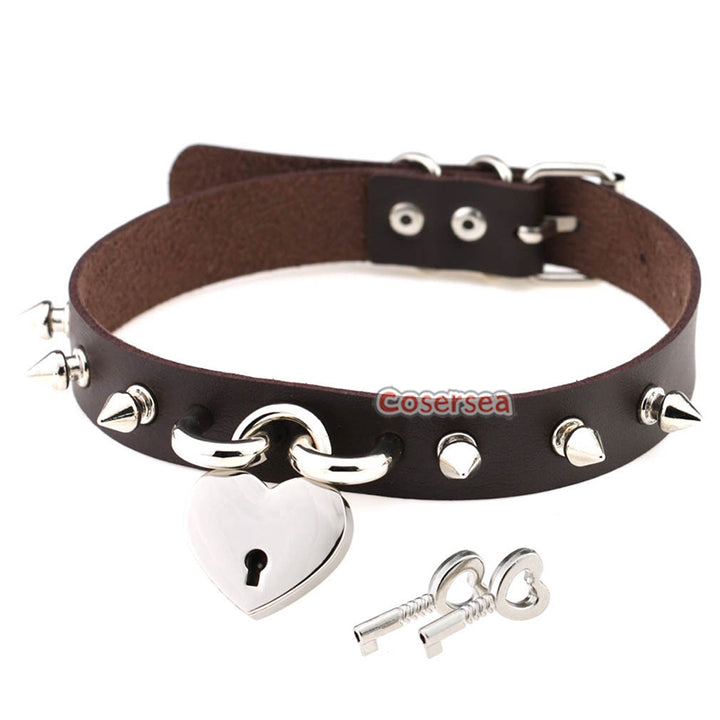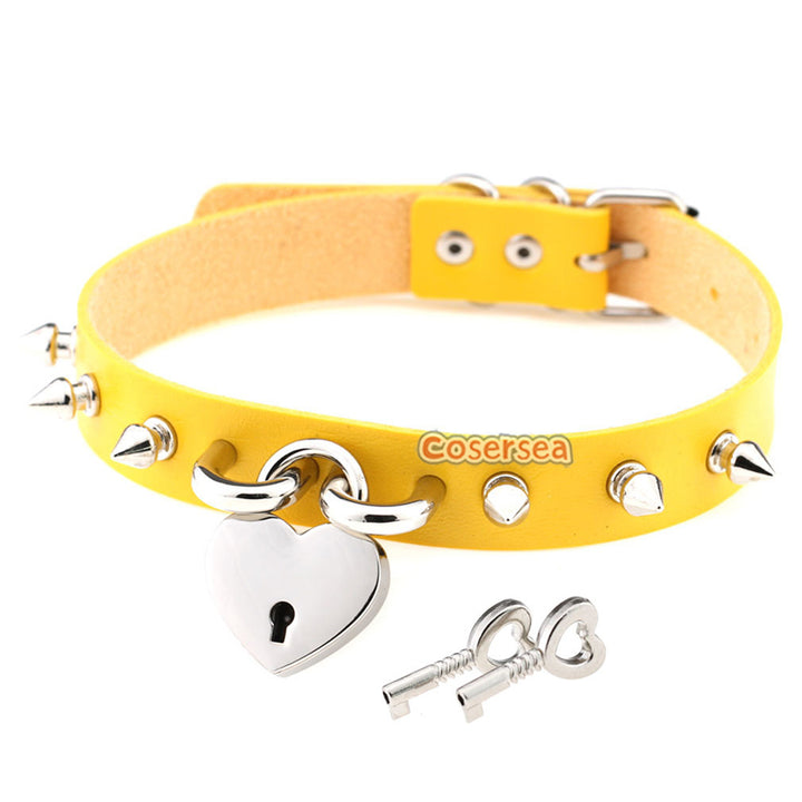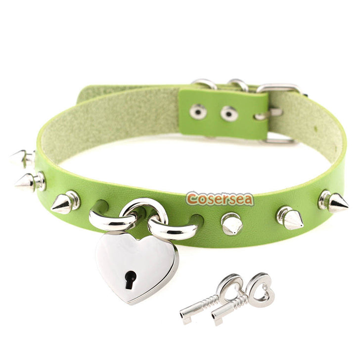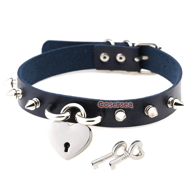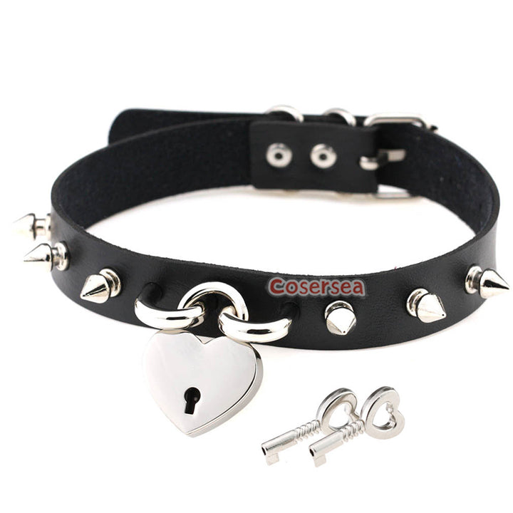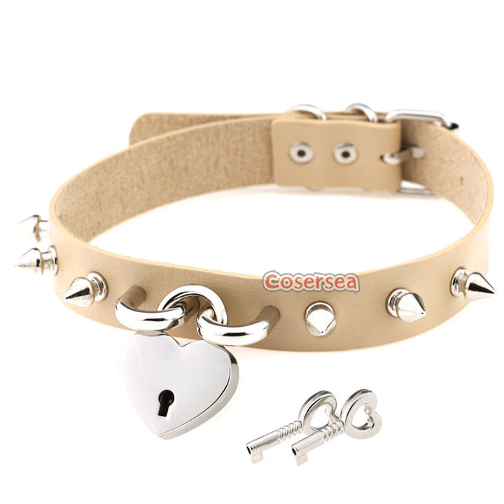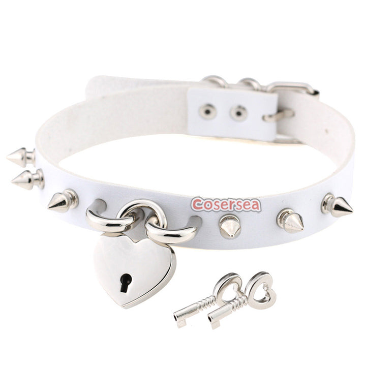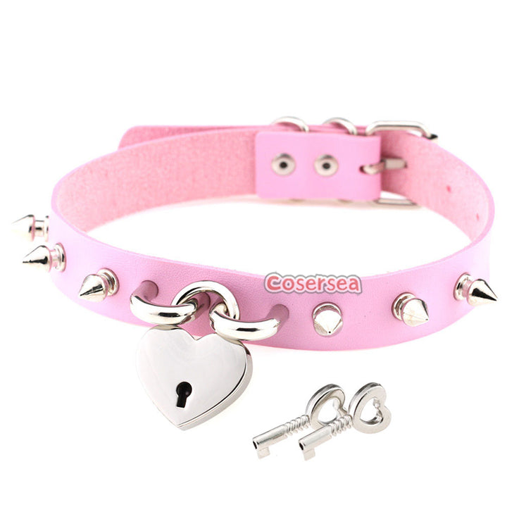 15 Colors Rock Harajuku Punk Rivet Love Lock Pendant Necklace PU Leather Collar Neck Chain