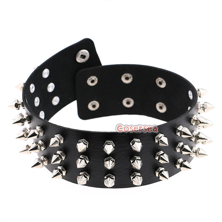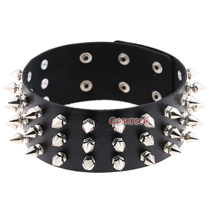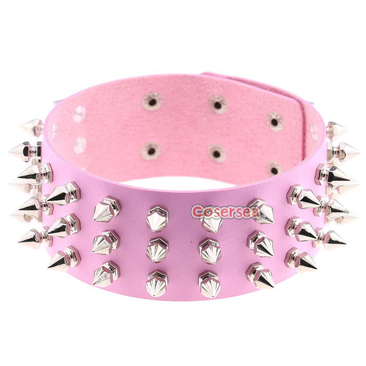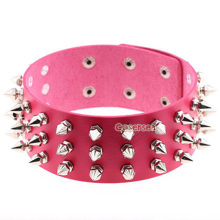 16 Colors Collar Nightclub Punk Style Three Rows Cone Rivet PU Leather Neck Chain