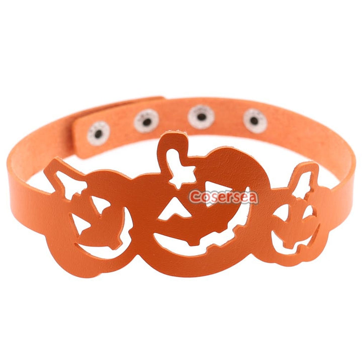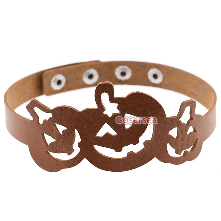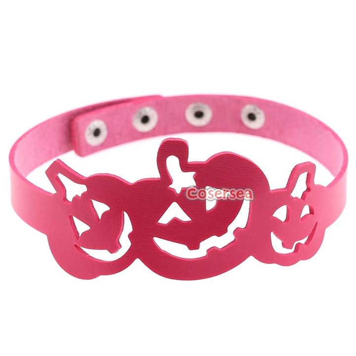16 Colors Exaggerated Halloween Hollow Pumpkin Necklace PU Leather Choker