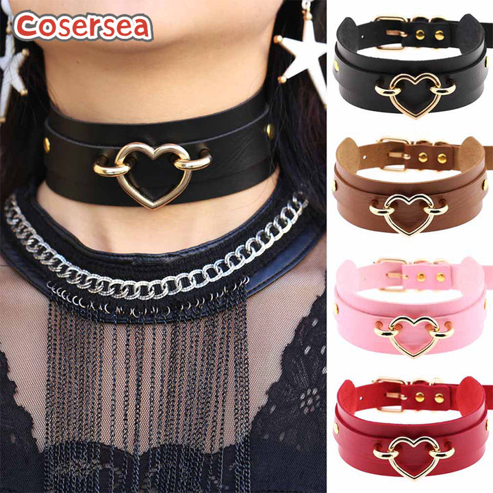 16 Colors Exaggerated Personality PU Leather Collar Nightclub Sexy Heart Necklace