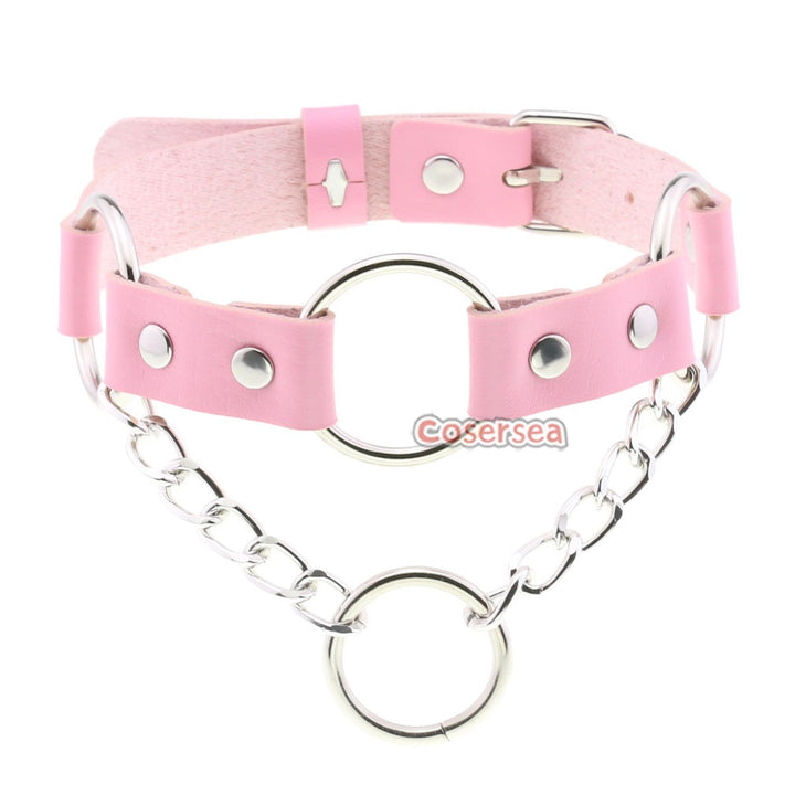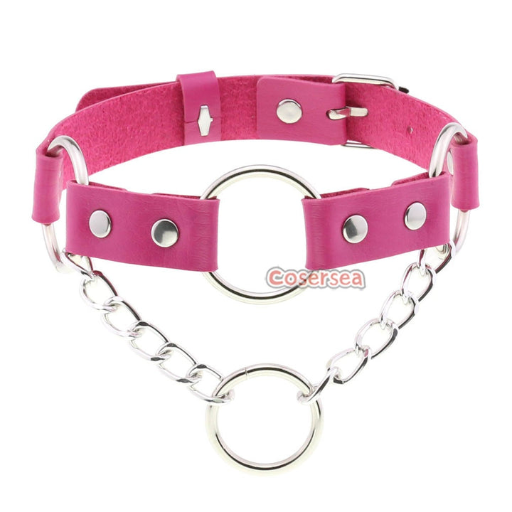 16 Colors Fashion PU Leather Ring Collar Necklace Punk Chain O-ring Neck Strap Collarbone Chain