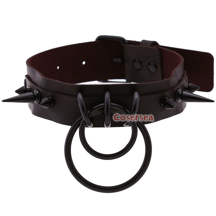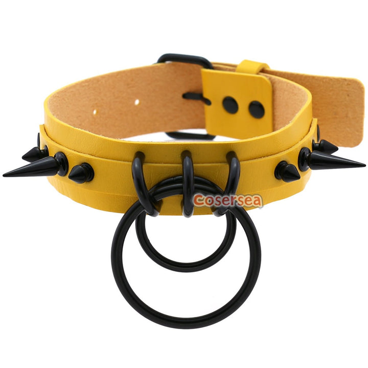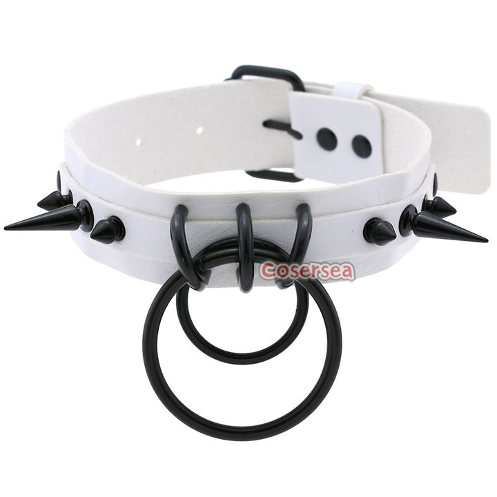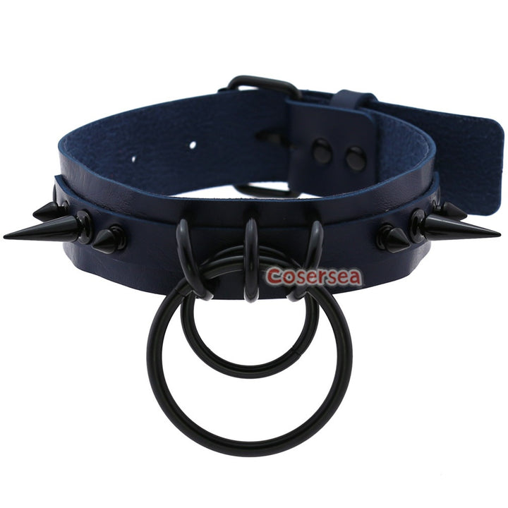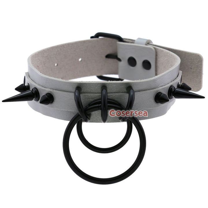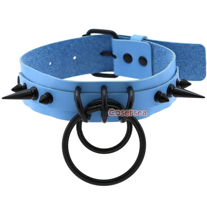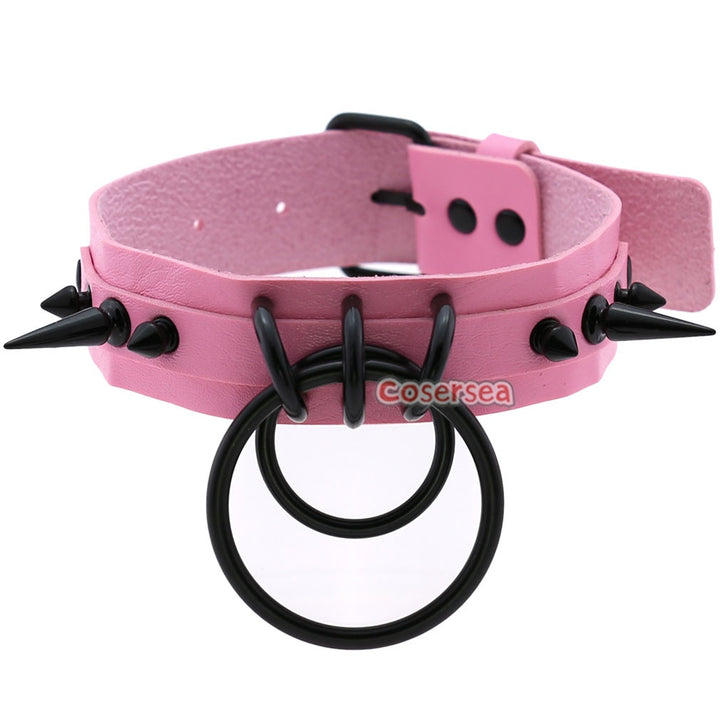 16 Colors Gothic Black Pointed Nail Double Loop Ring Collar Necklace PU Leather Choker