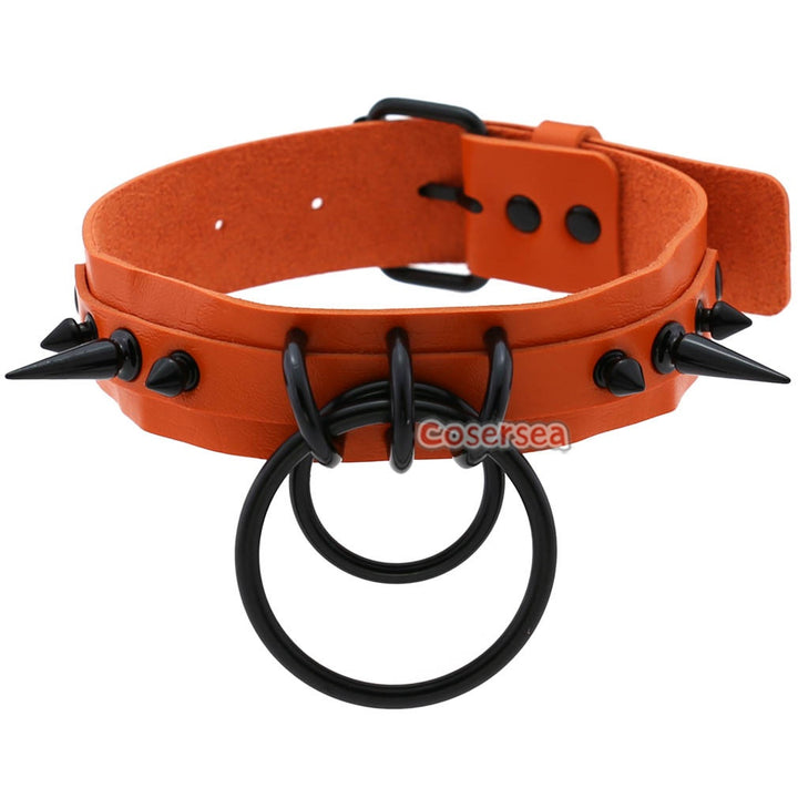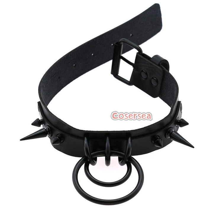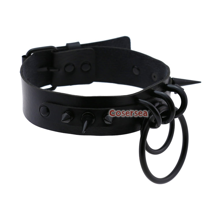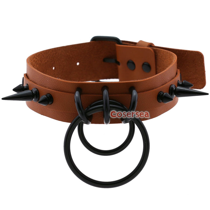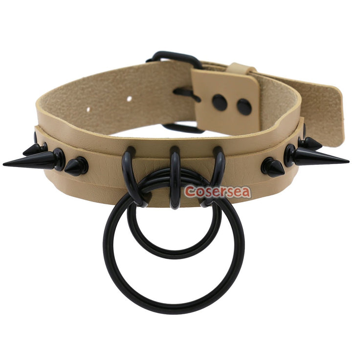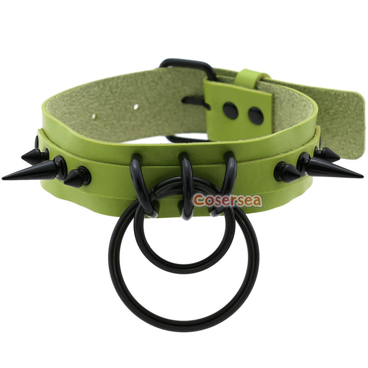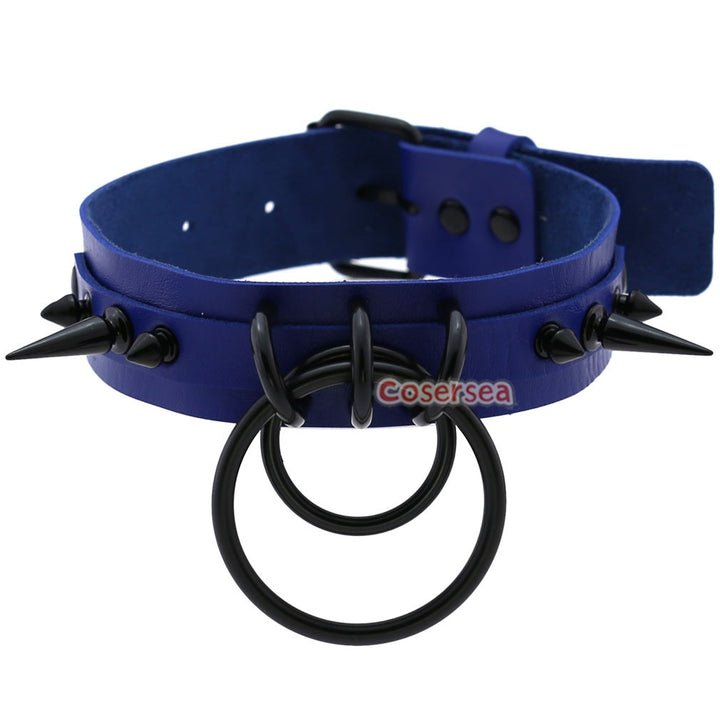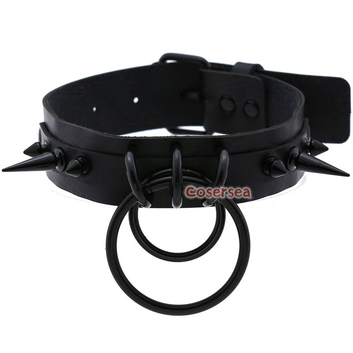 16 Colors Gothic Black Pointed Nail Double Loop Ring Collar Necklace PU Leather Choker
