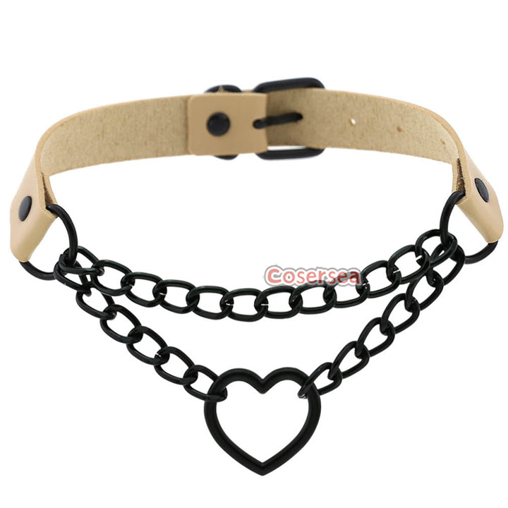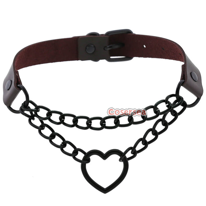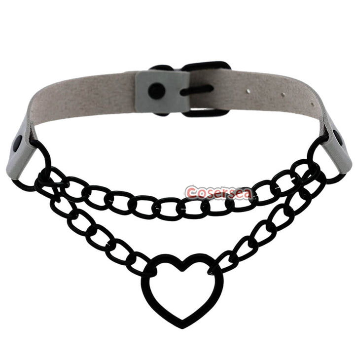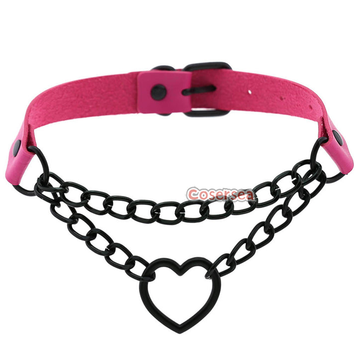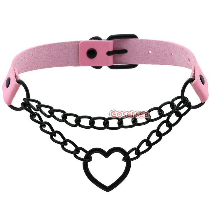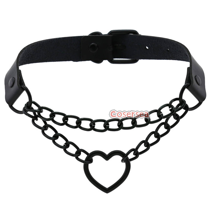16 Colors Harajuku Heart Black Chain Necklace Fashion Trend PU Leather Love Chain