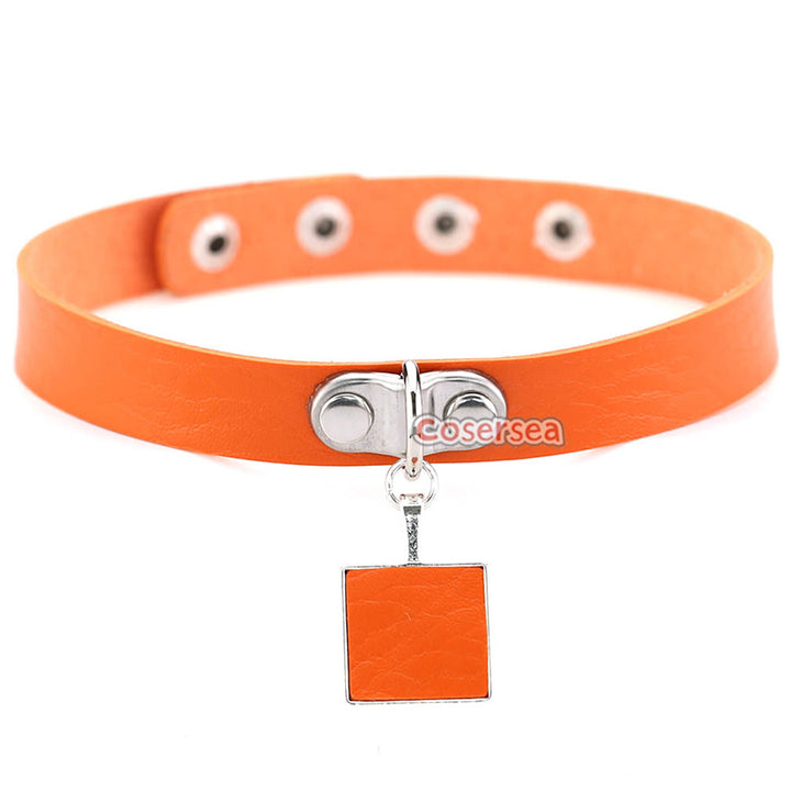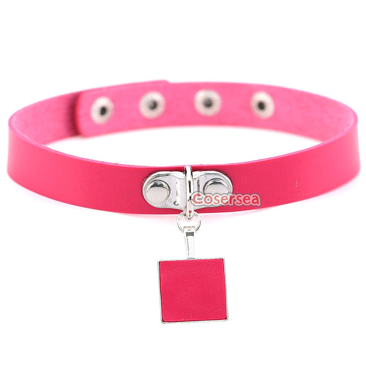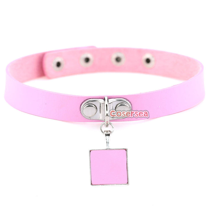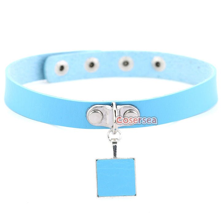 16 Colors Japanese Harajuku Geometric Square Pendant Neck Strap PU Leather Collar Necklace