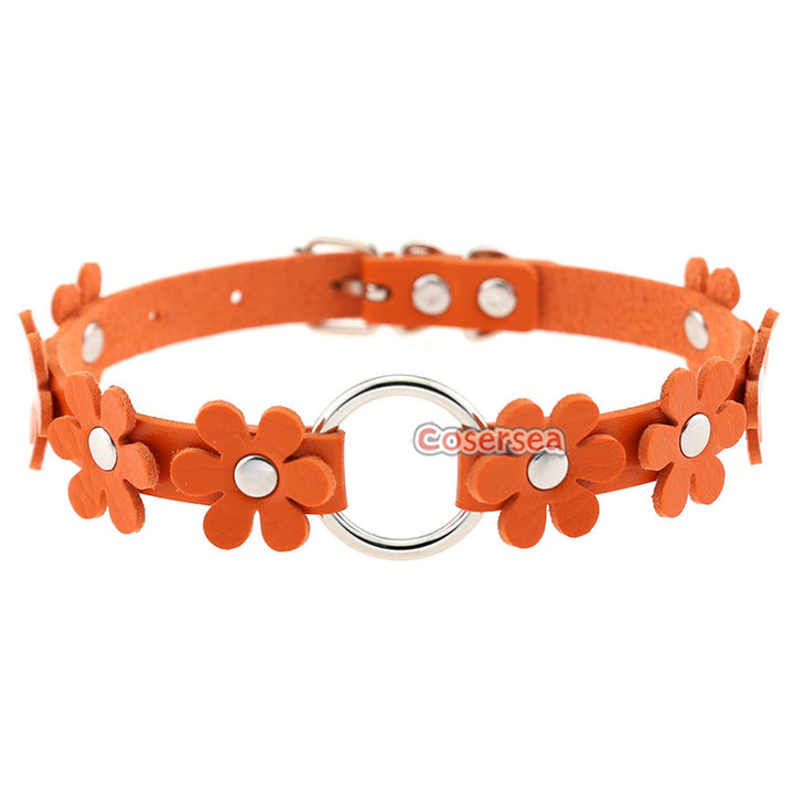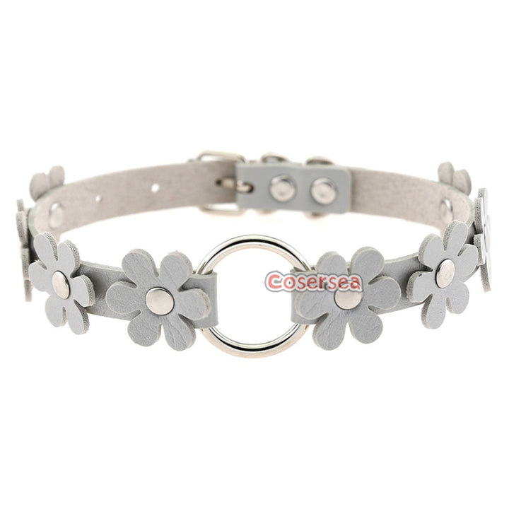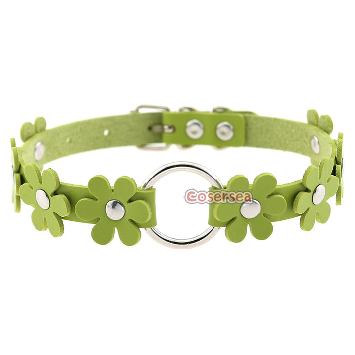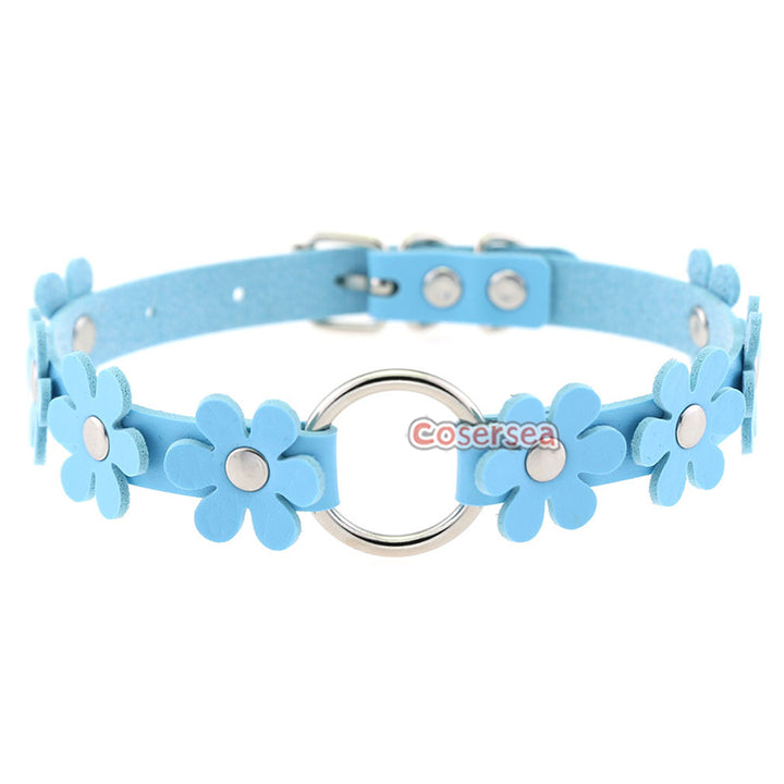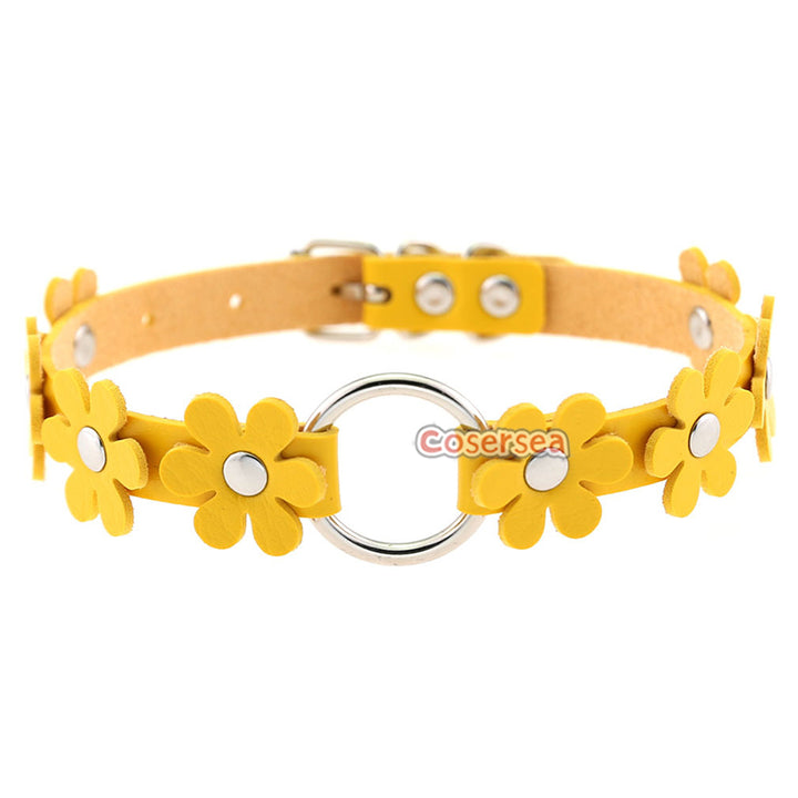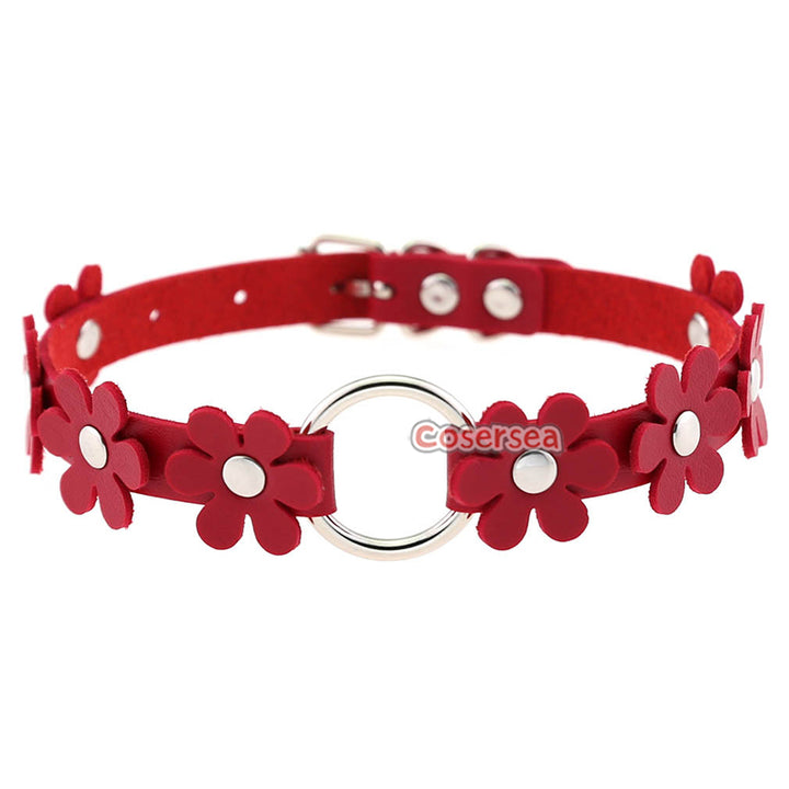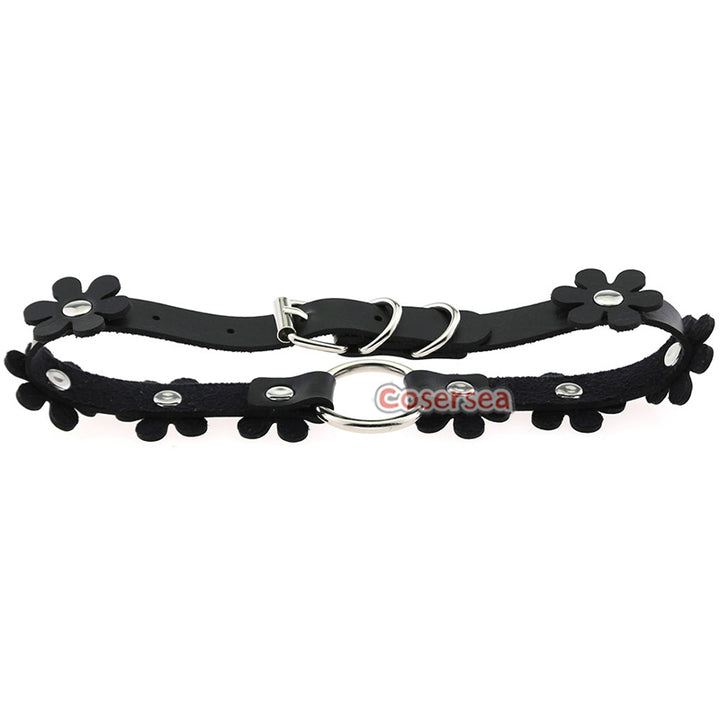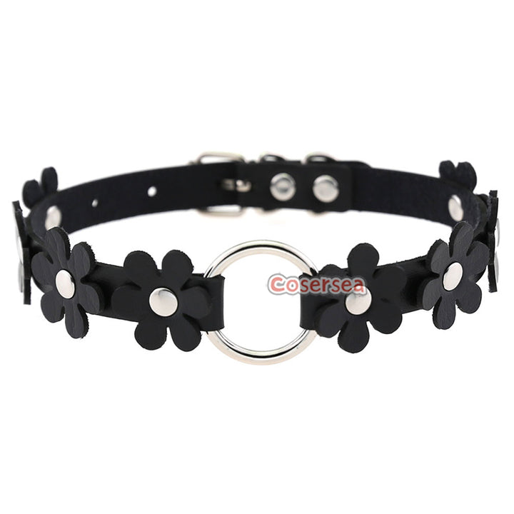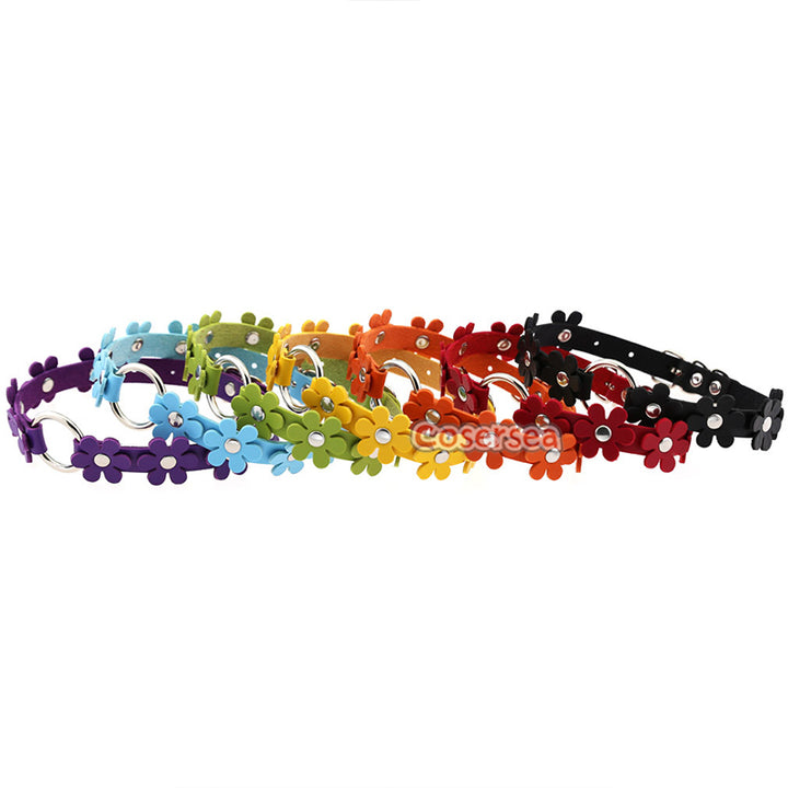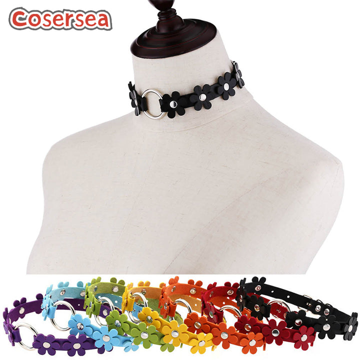 16 Colors Japanese Harajuku Trend Punk PU Leather Flower Ring Collar Choker