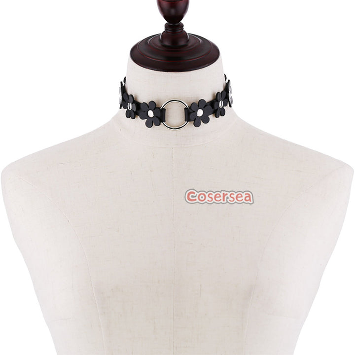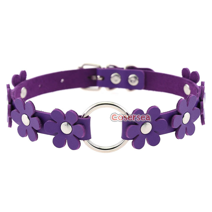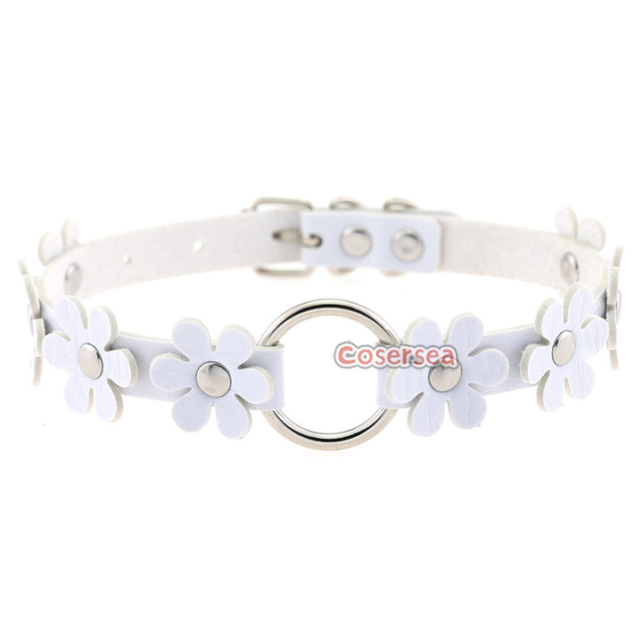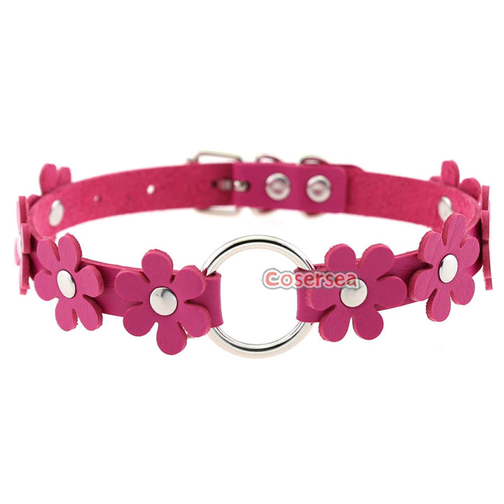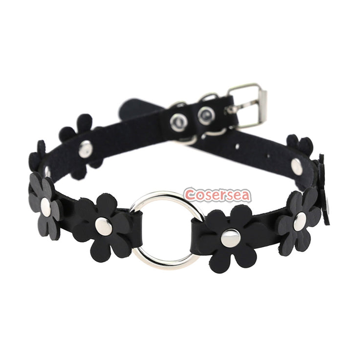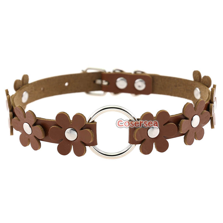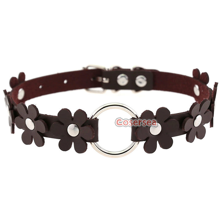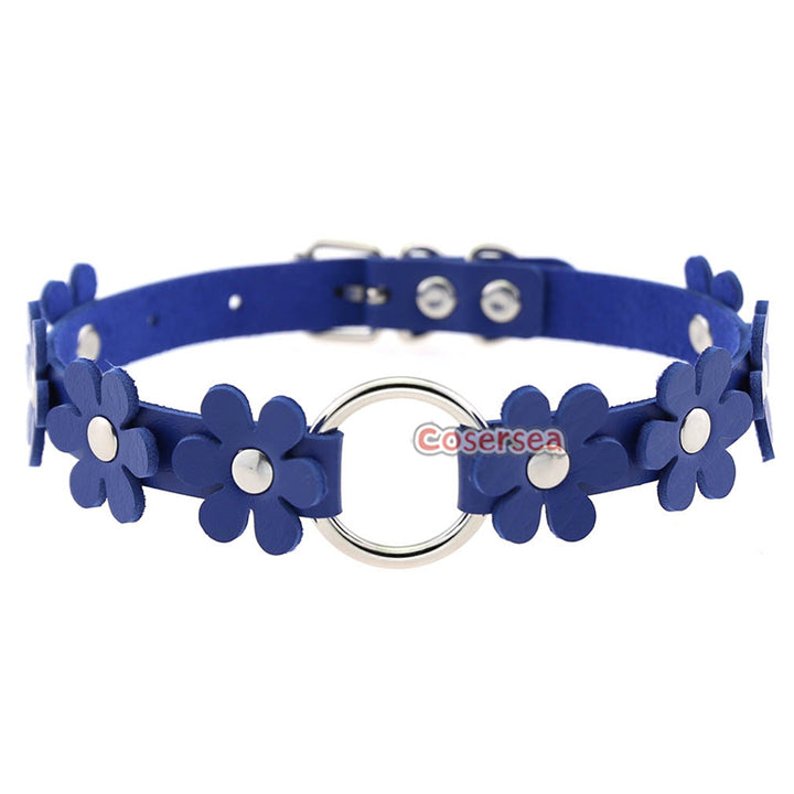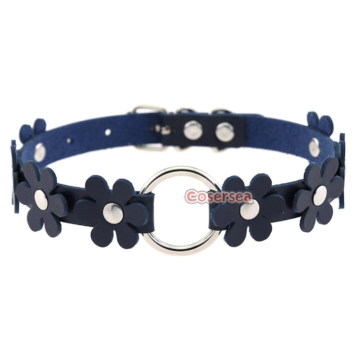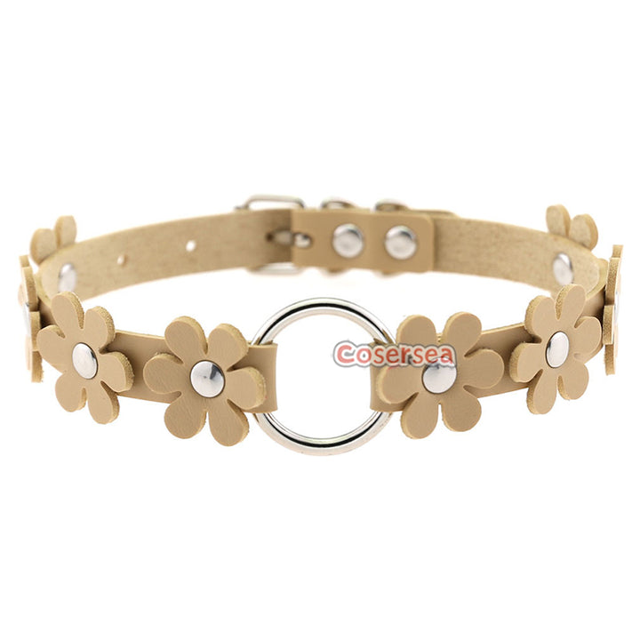 16 Colors Japanese Harajuku Trend Punk PU Leather Flower Ring Collar Choker