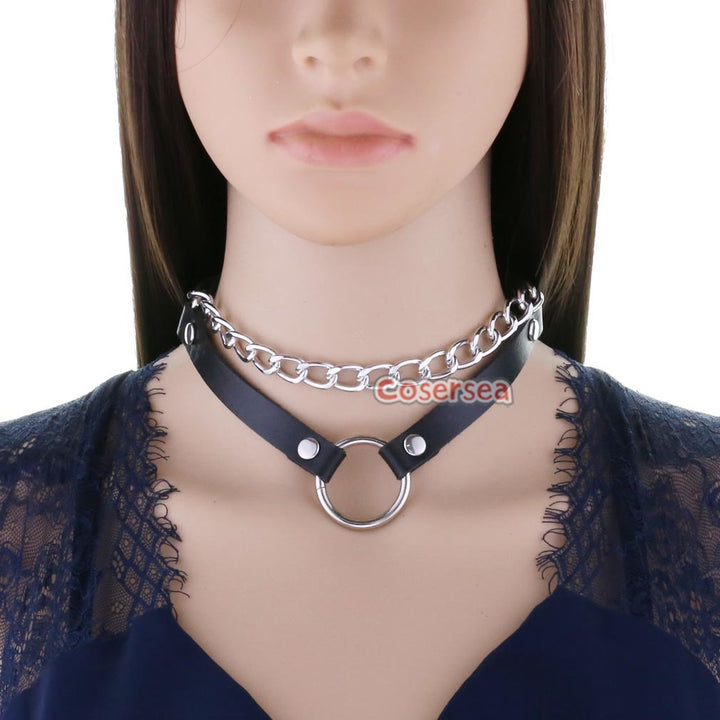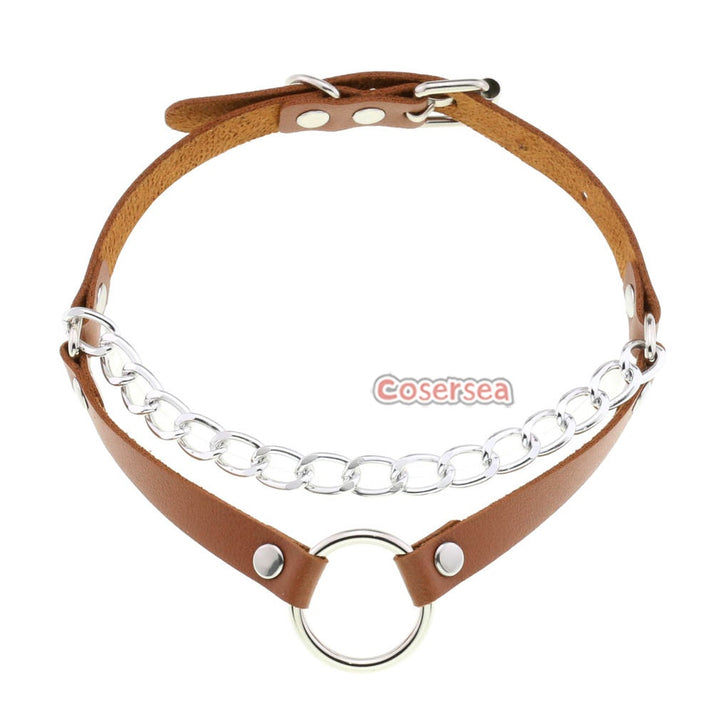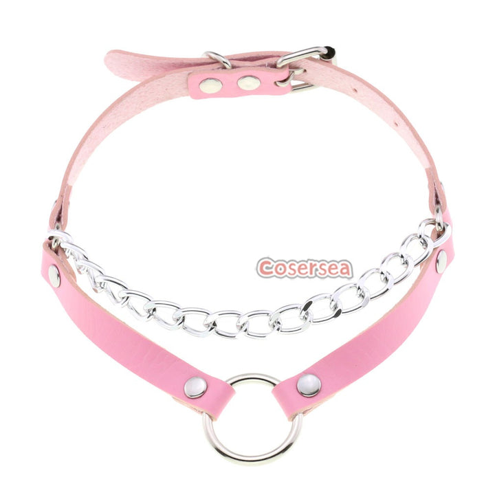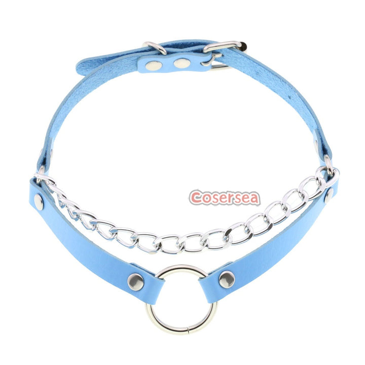 16 Colors Original Punk Minimalist Chain Double Line O-ring Necklace PU Leather Collar Choker