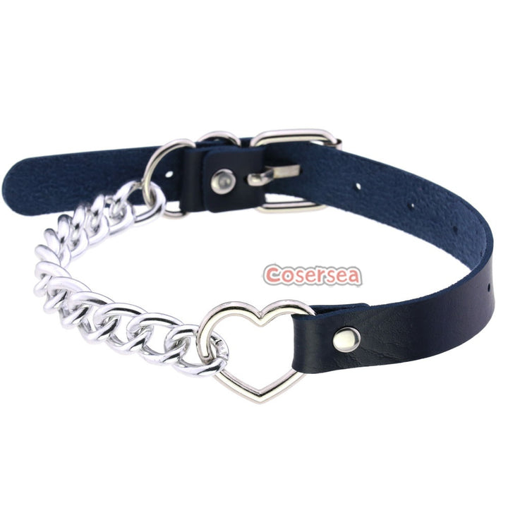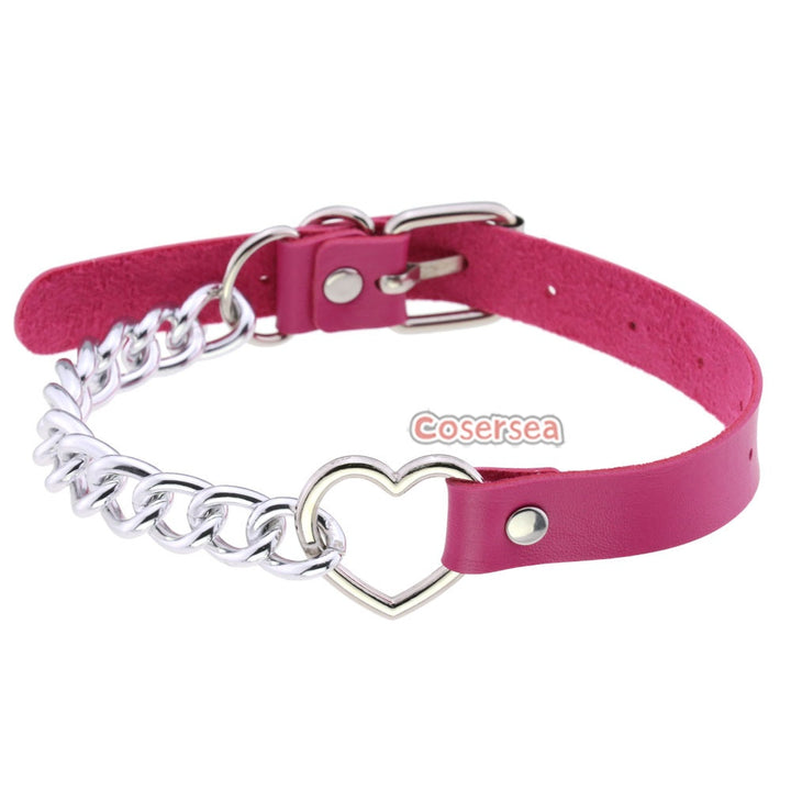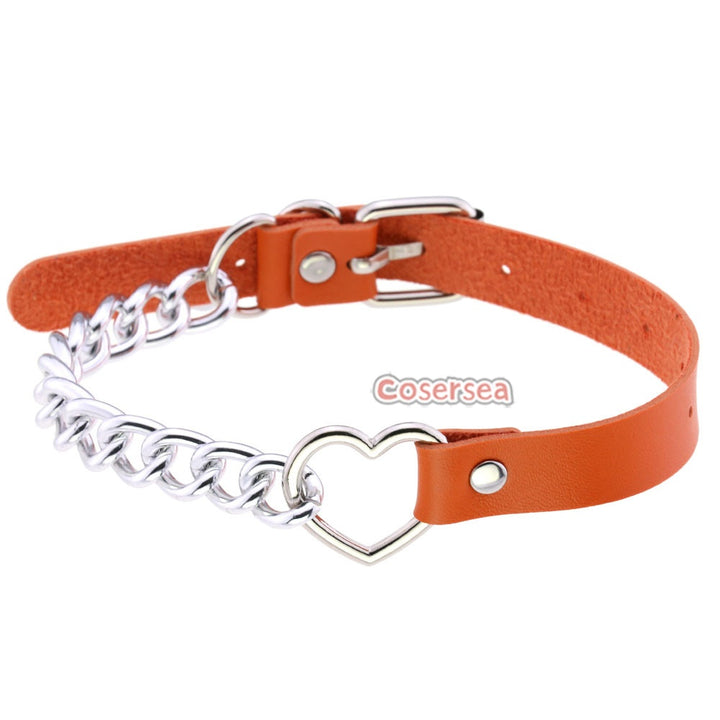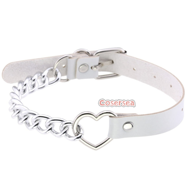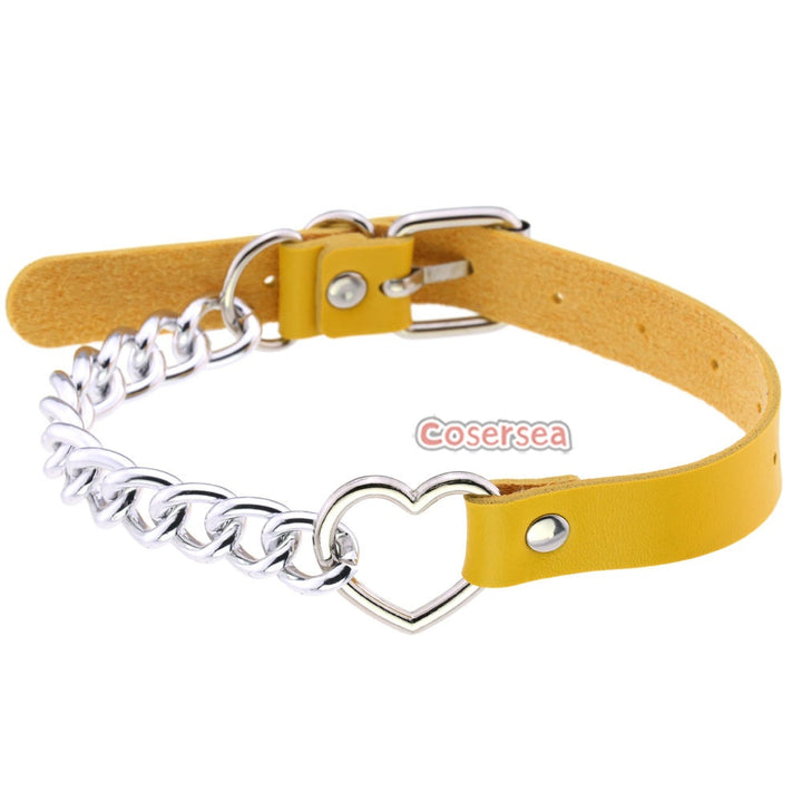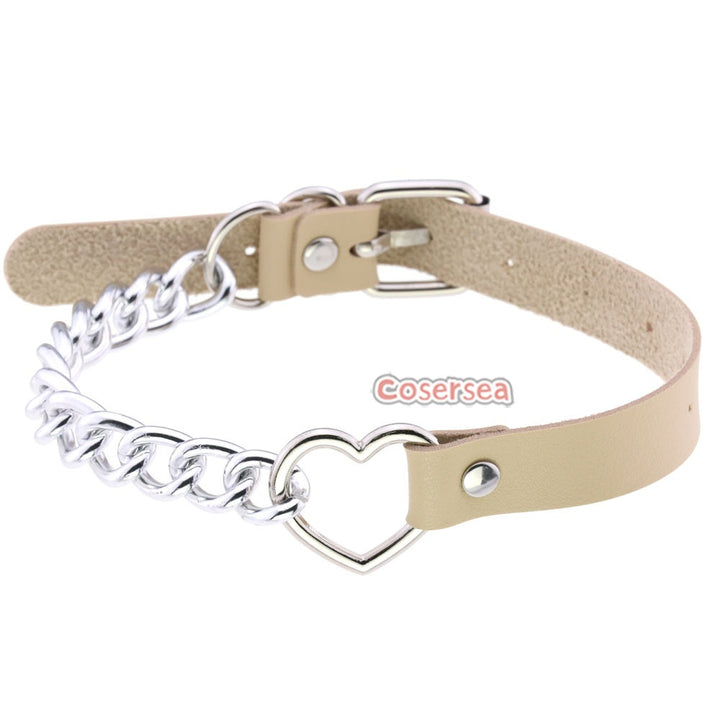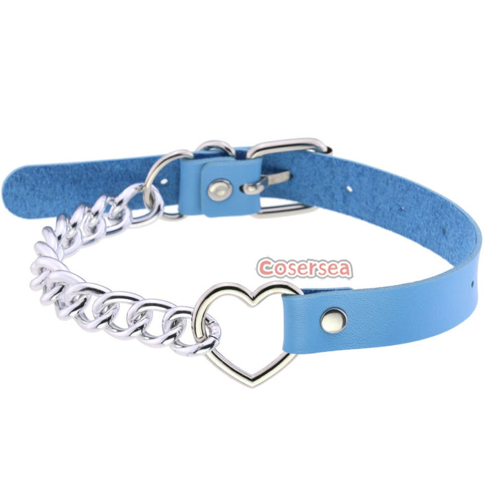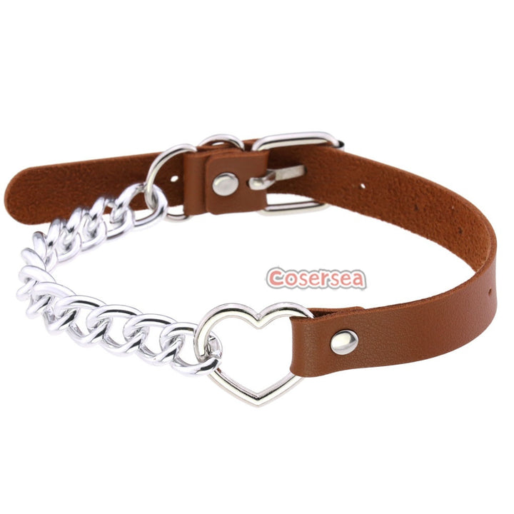 16 Colors Personalized PU Leather Collar Necklace Punk Metal Splicing Heart-shaped Neck Strap