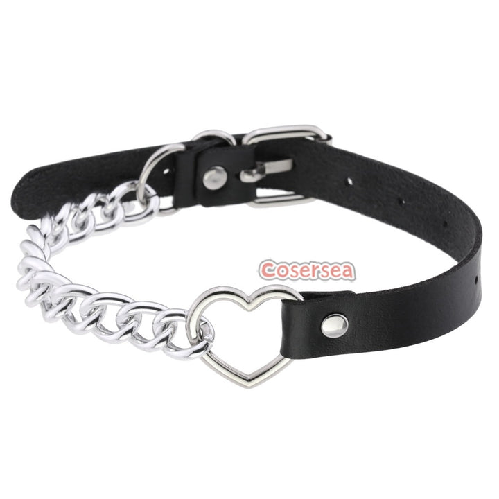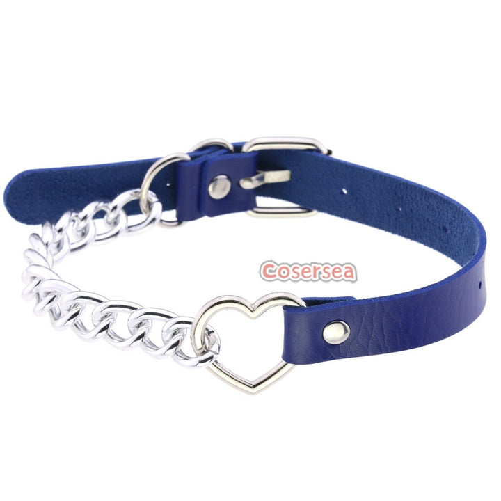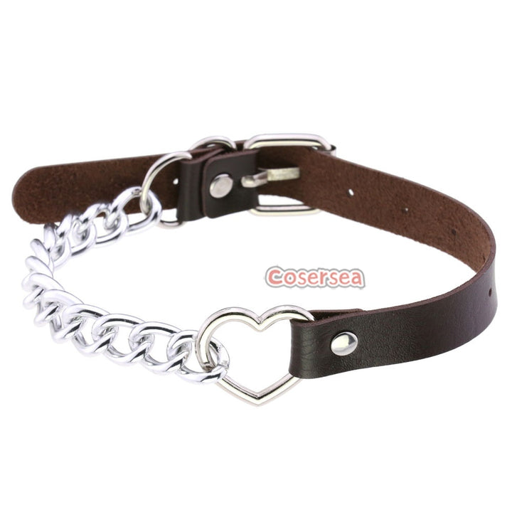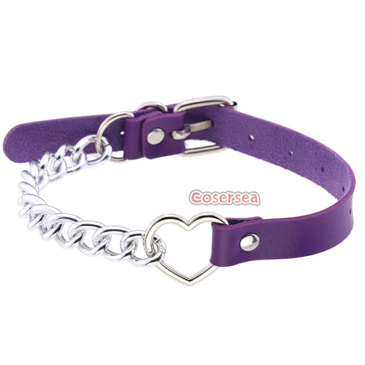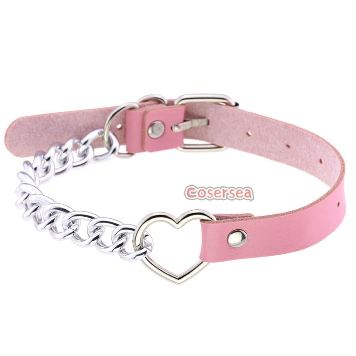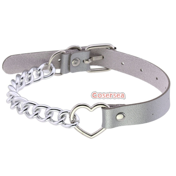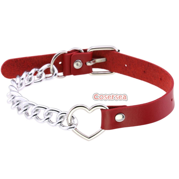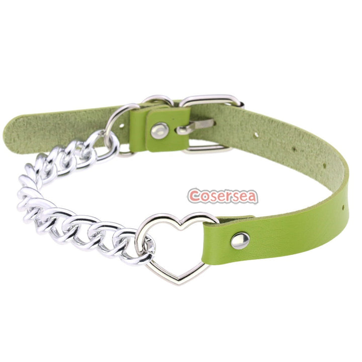 16 Colors Personalized PU Leather Collar Necklace Punk Metal Splicing Heart-shaped Neck Strap