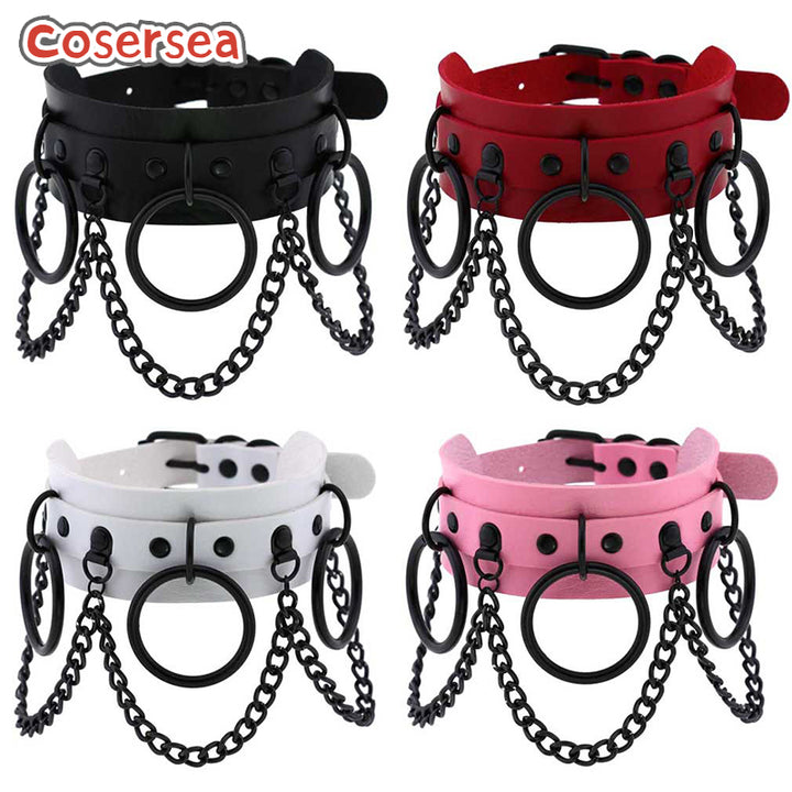 16 Colors PU Leather Collar Necklace Nightclubs Bars O-rings Black Chain Choker
