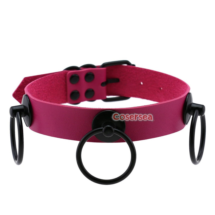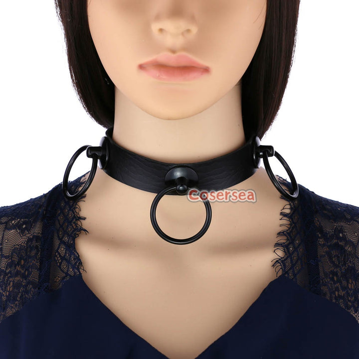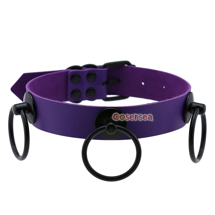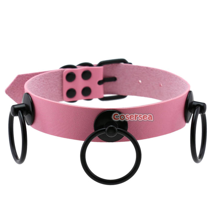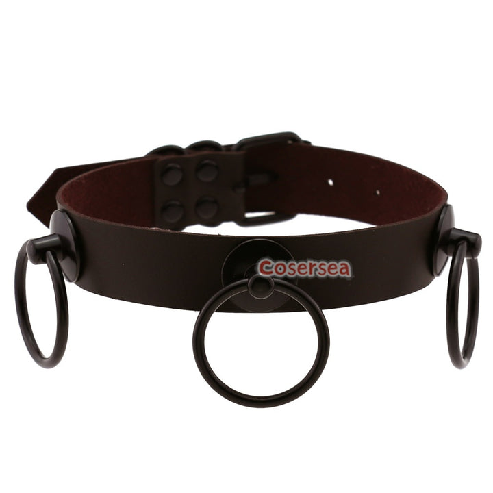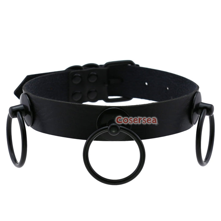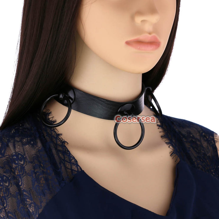 16 Colors PU Leather Collar Punk Black Circle Hanging Ring Necklace Choker