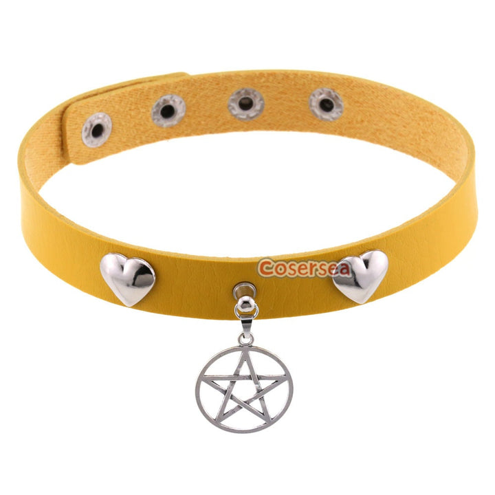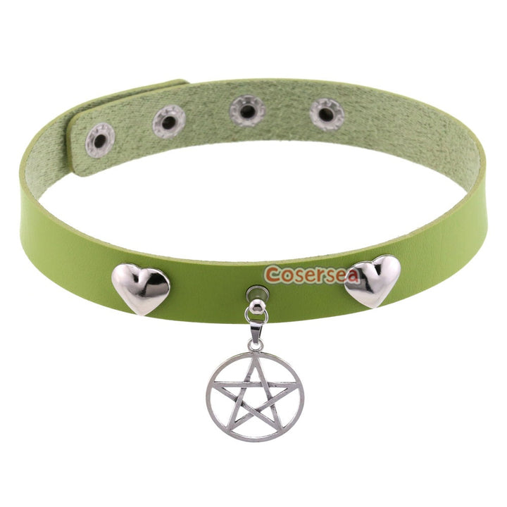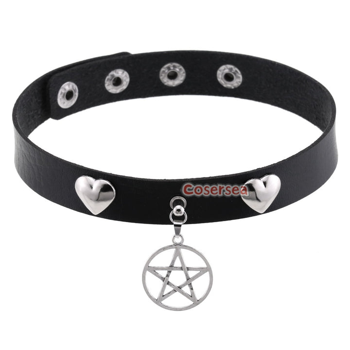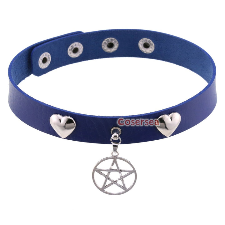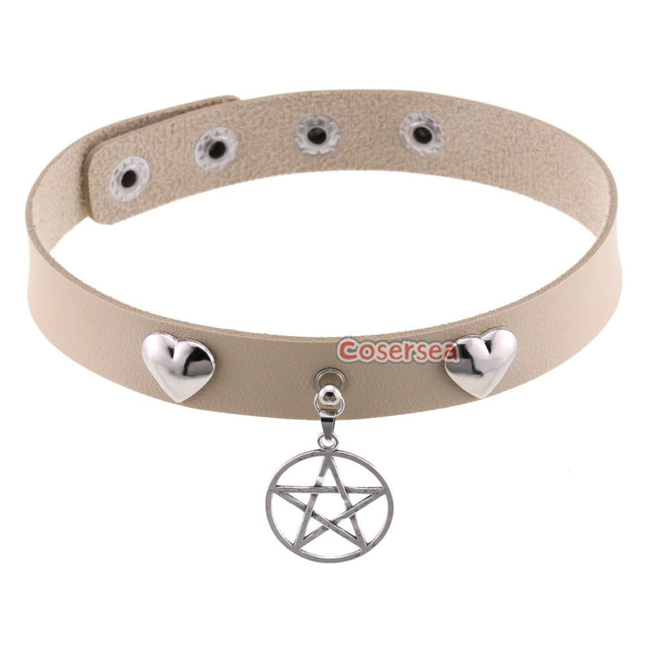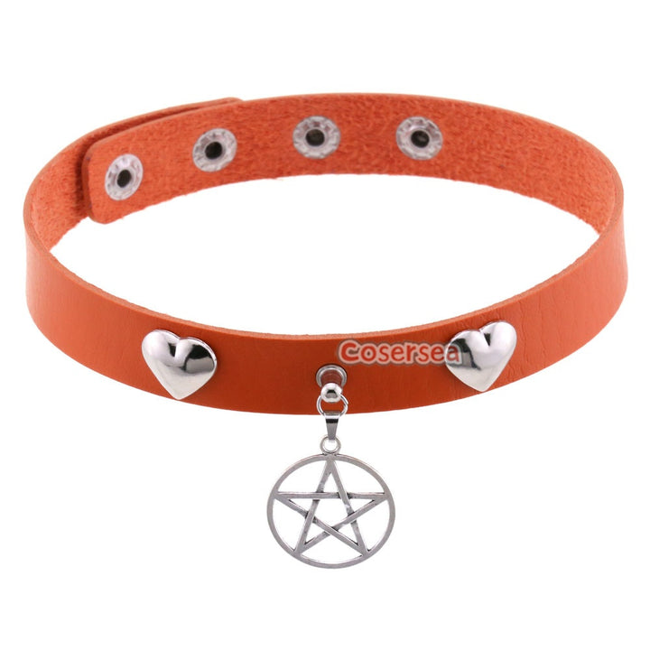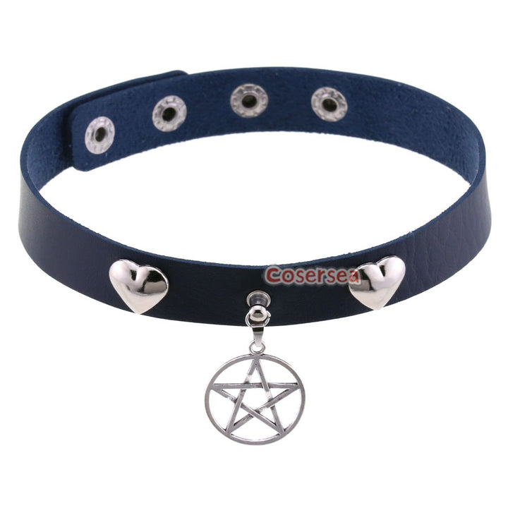 16 Colors PU Leather Heart Rivet Collar Collarbone Necklace Star Pendant Neck Strap Choker