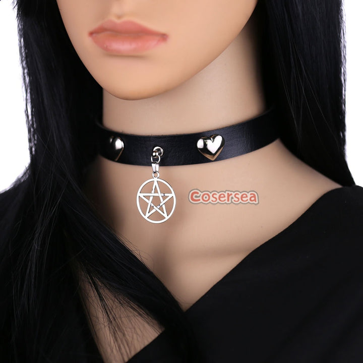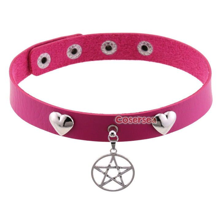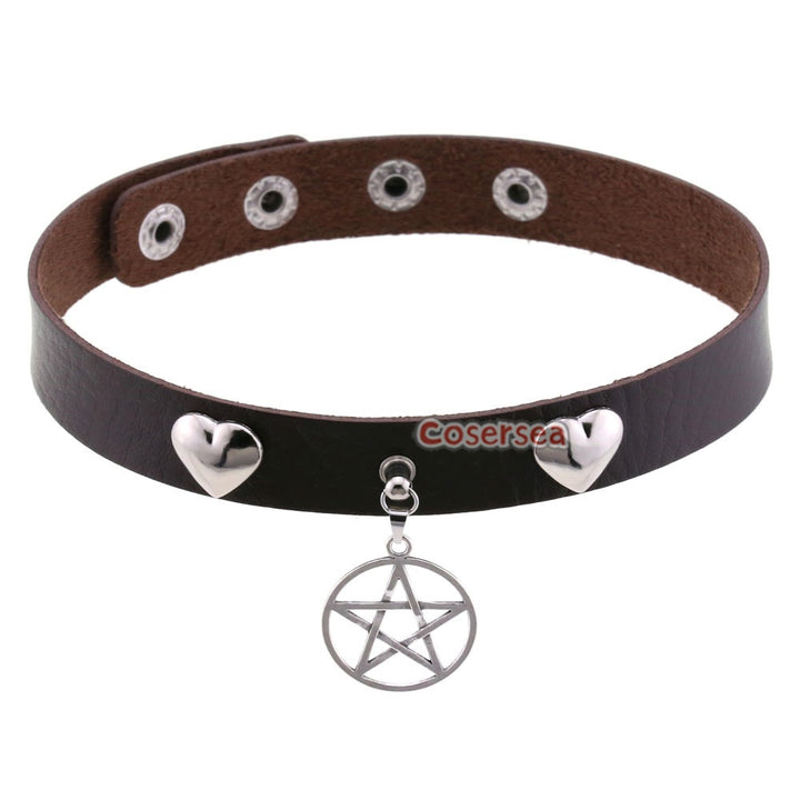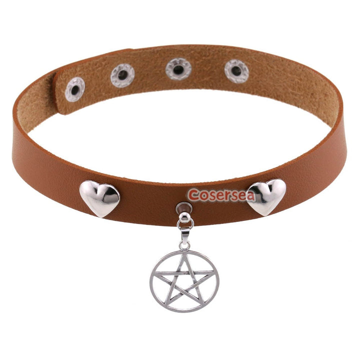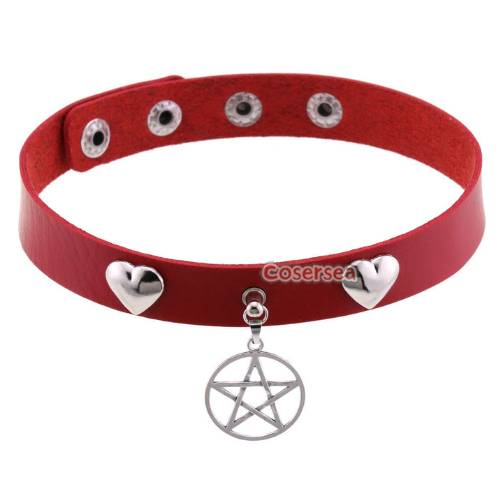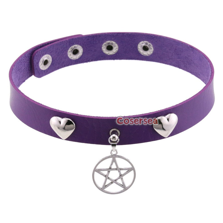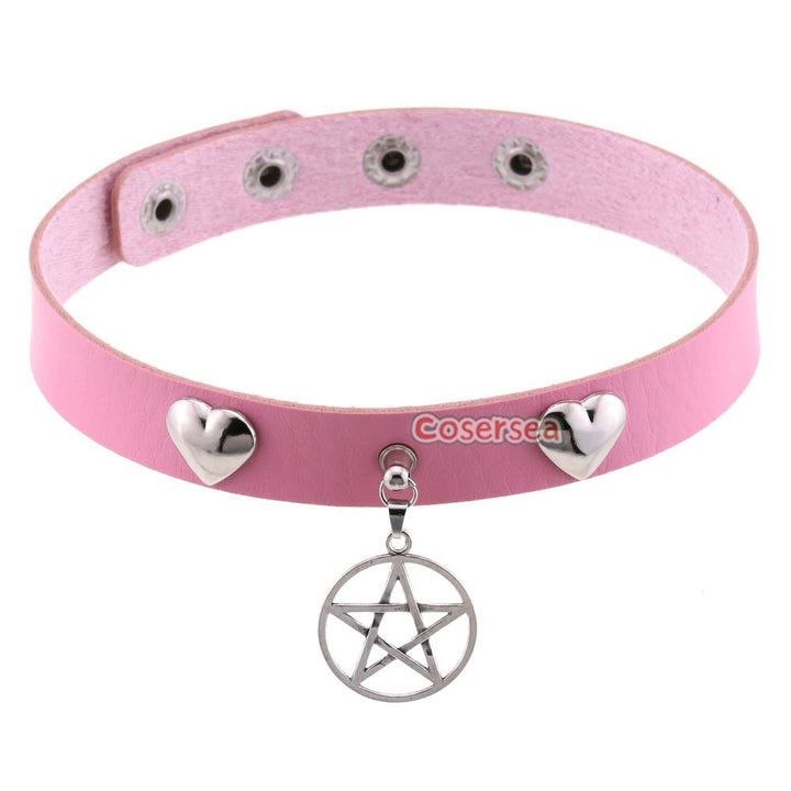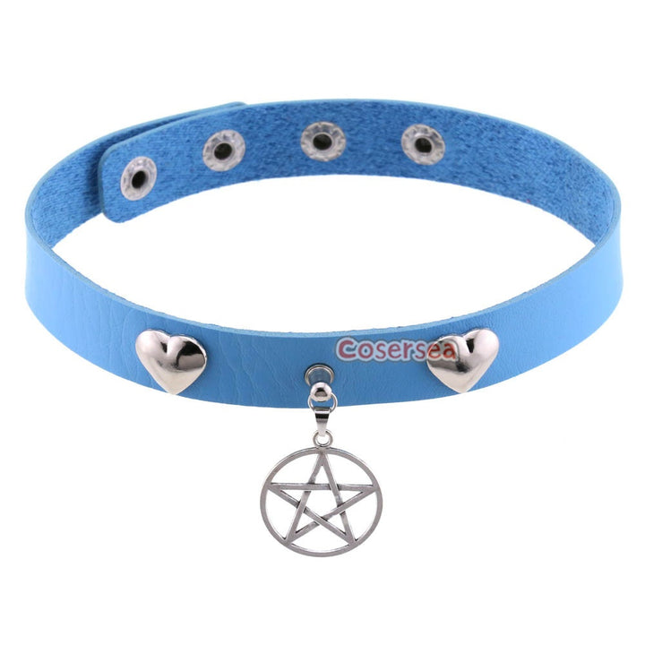 16 Colors PU Leather Heart Rivet Collar Collarbone Necklace Star Pendant Neck Strap Choker