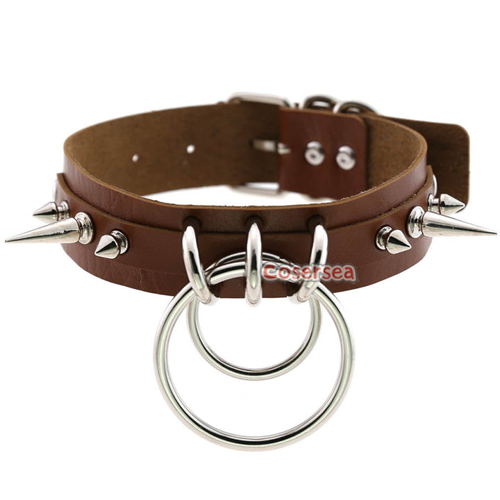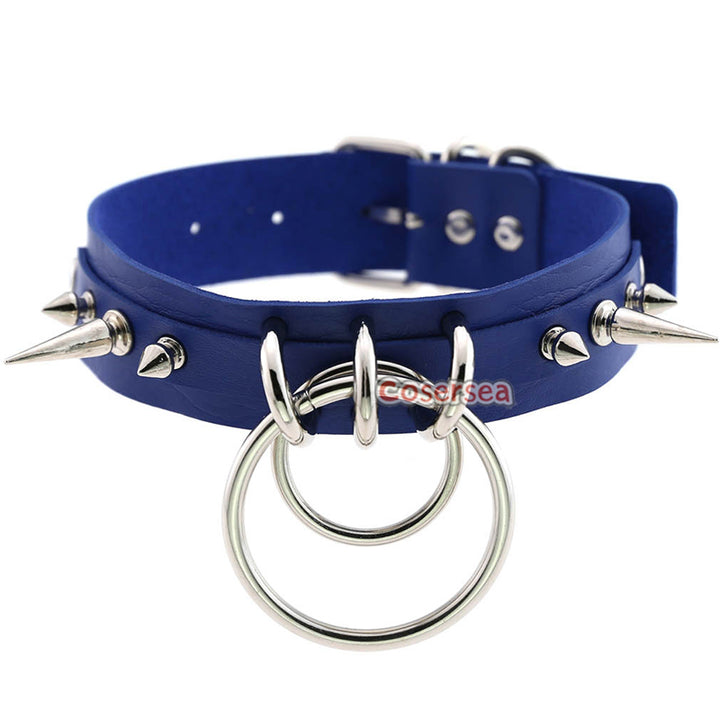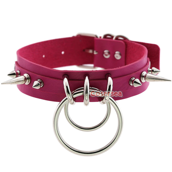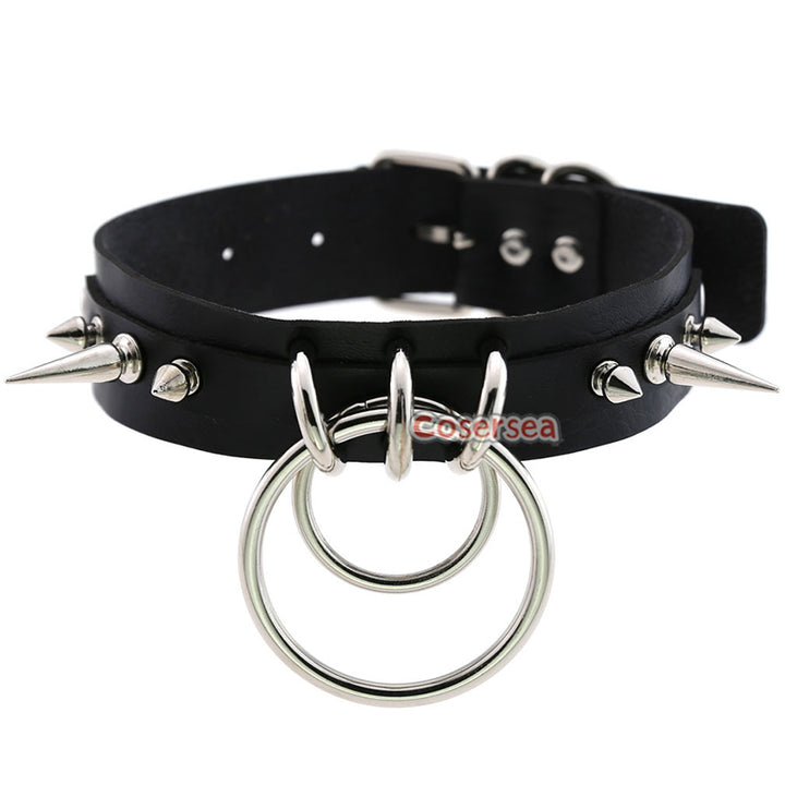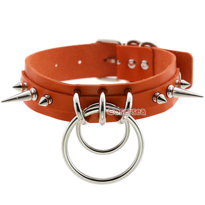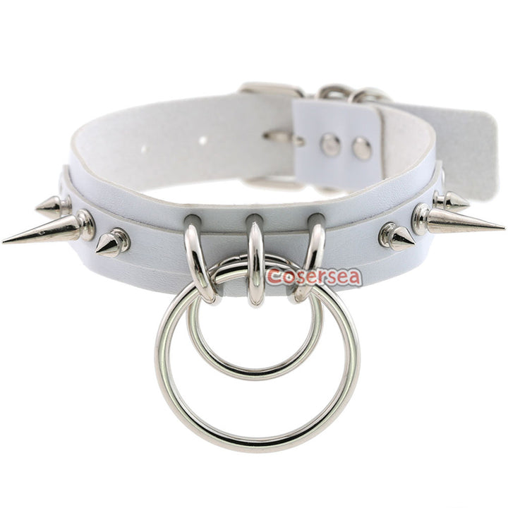 16 Colors PU Leather Rivets Neck Rings Double O-ring Collarbone Chains Choker