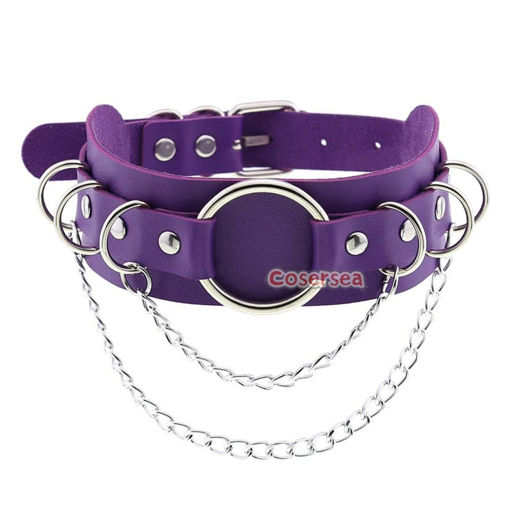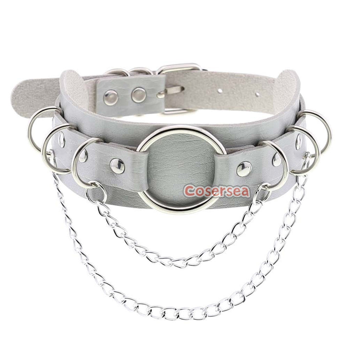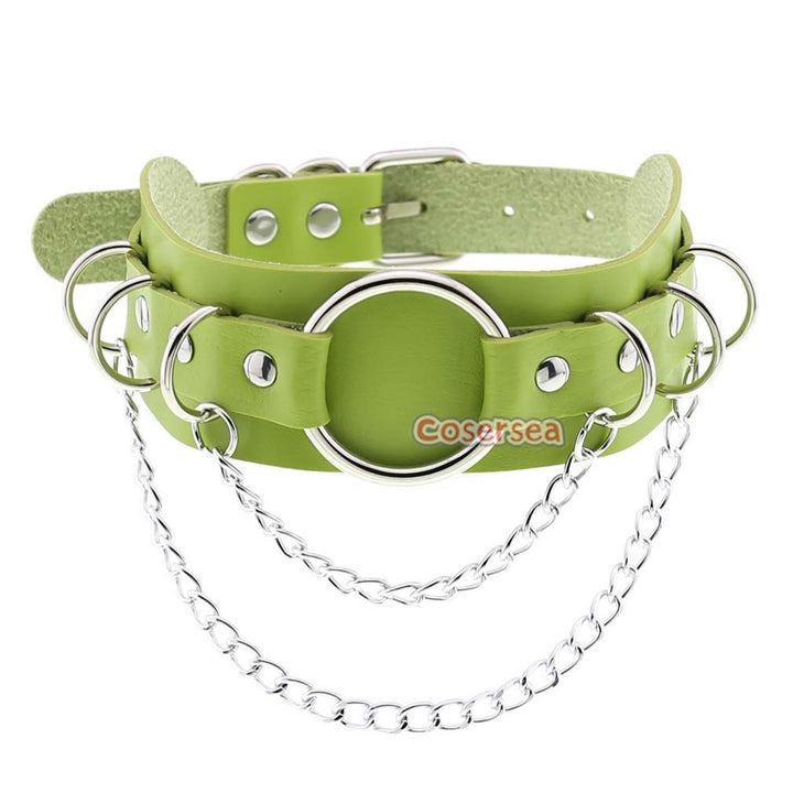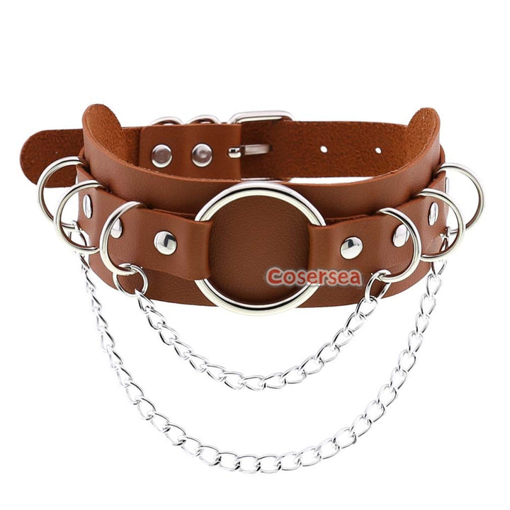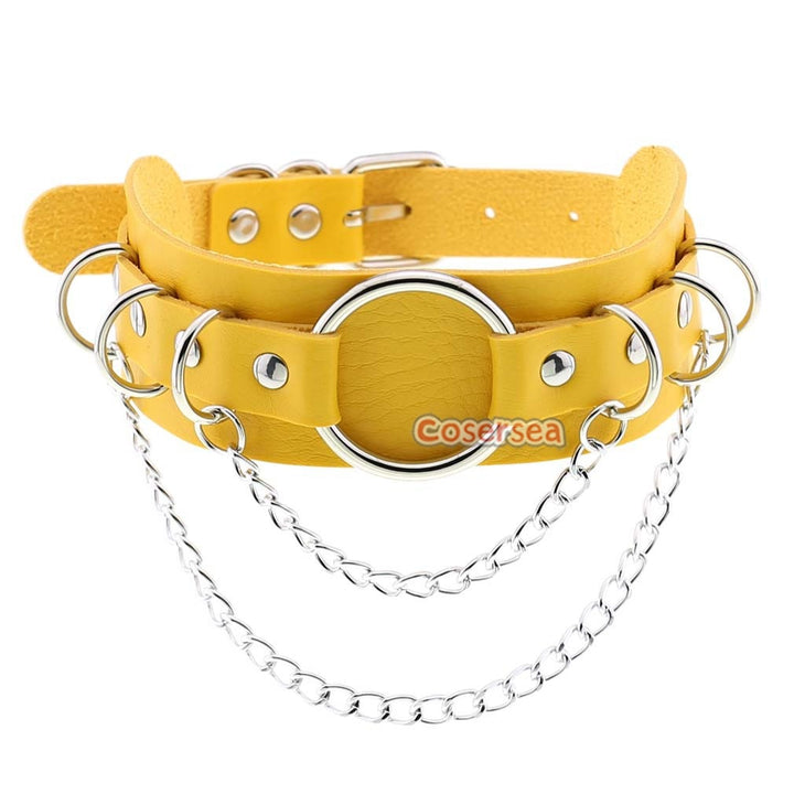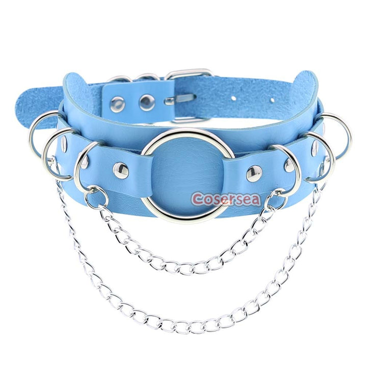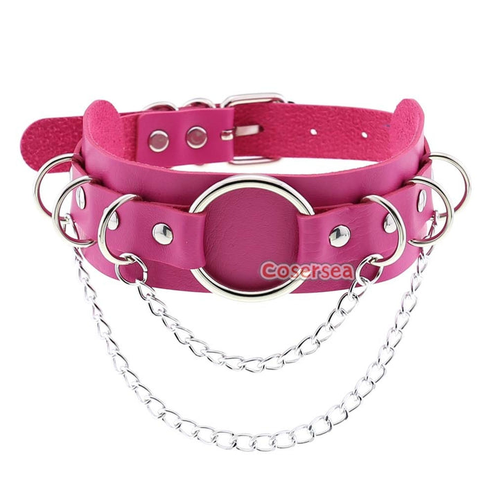 16 Colors Punk Double-layer PU Leather O-ring Necklace Collarbone Chain