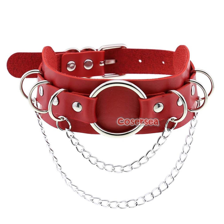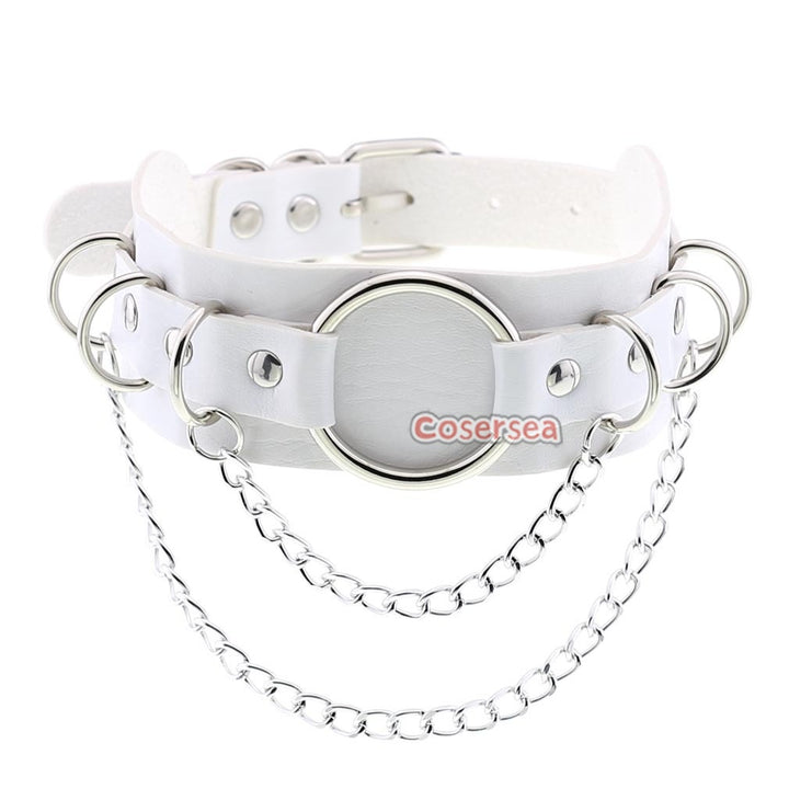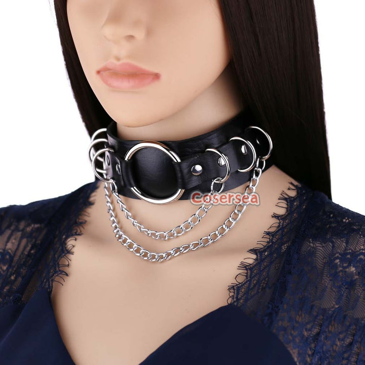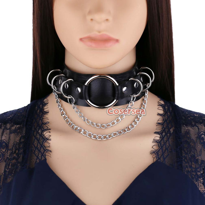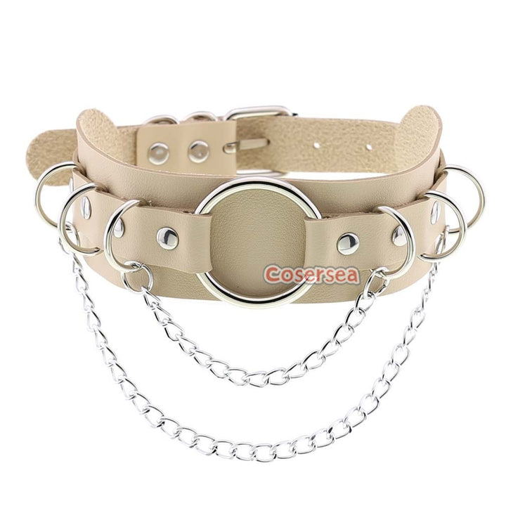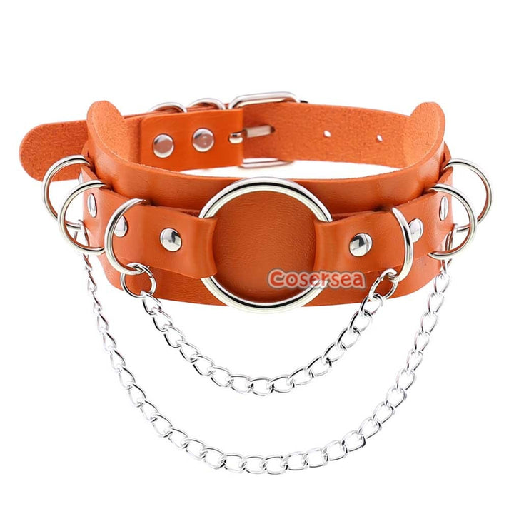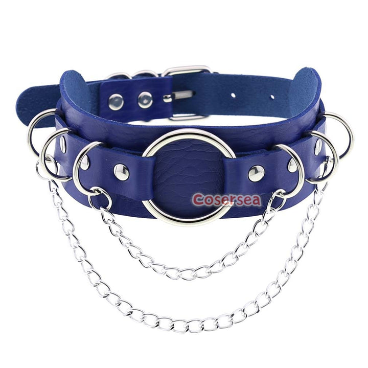 16 Colors Punk Double-layer PU Leather O-ring Necklace Collarbone Chain