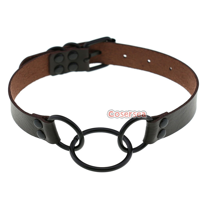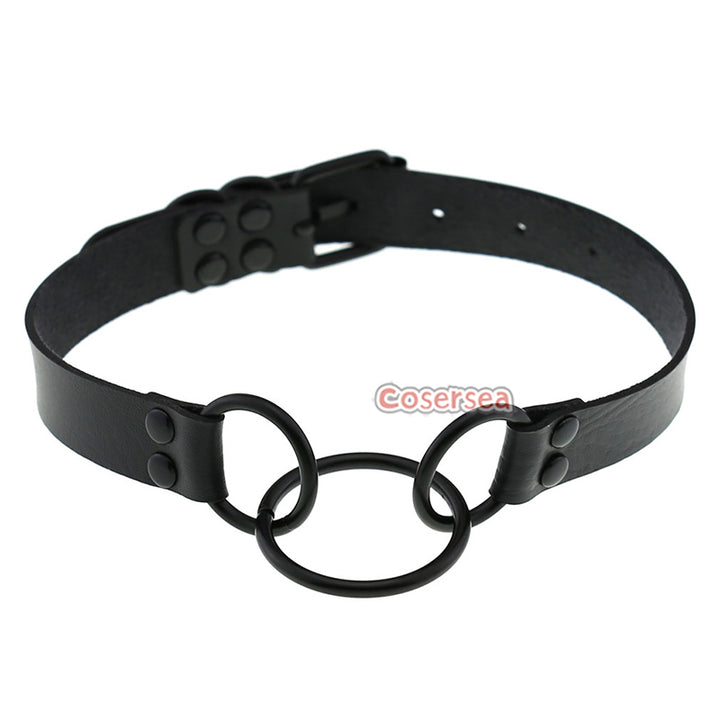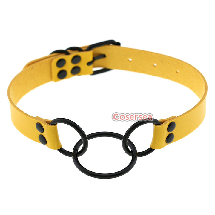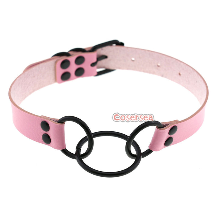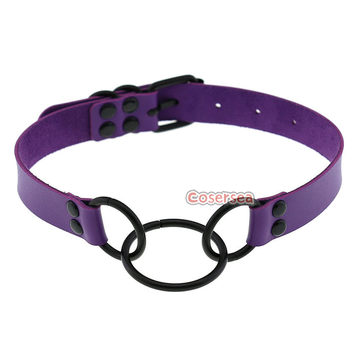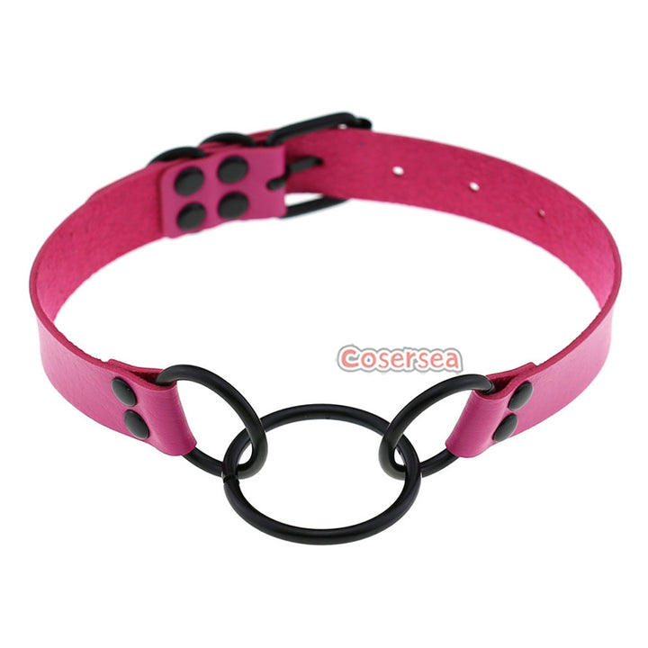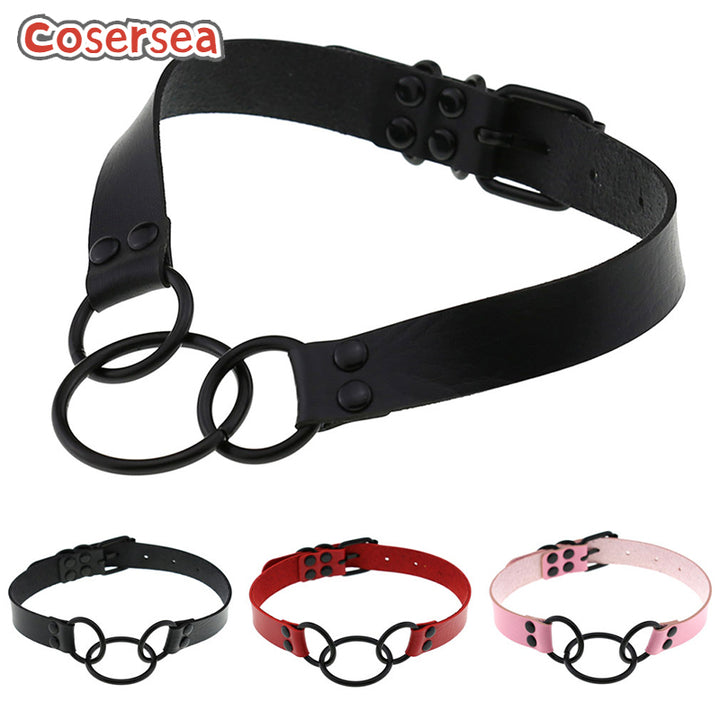 16 Colors Punk Gothic PU Leather Collar Necklace Personalized Metal 3 Ring Choker