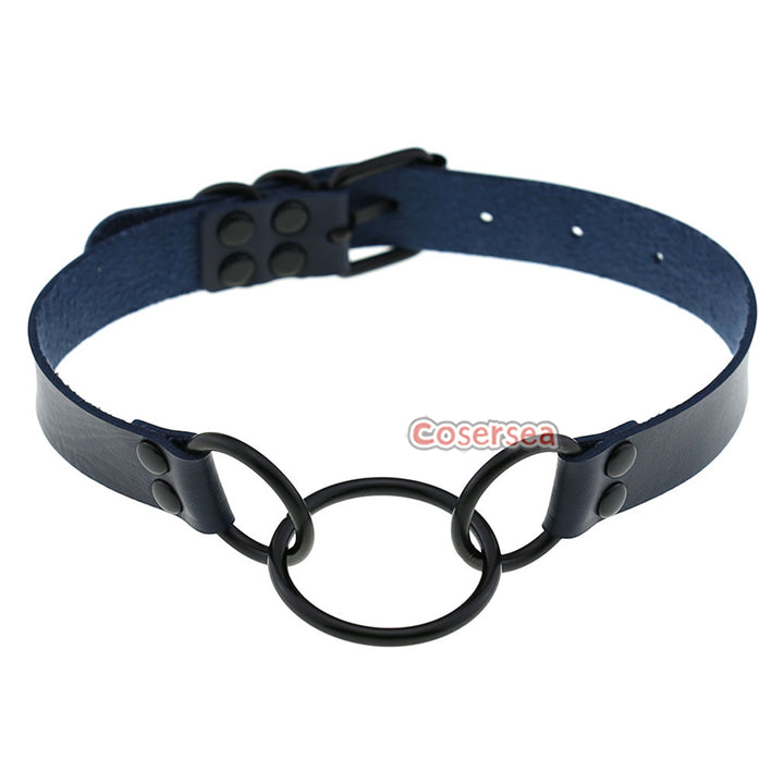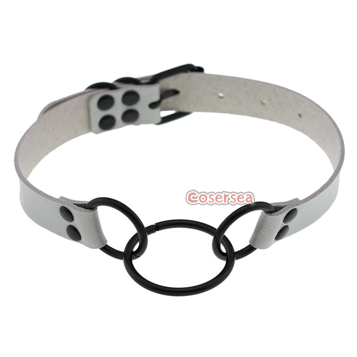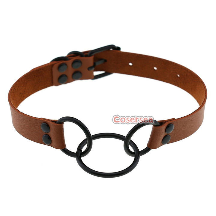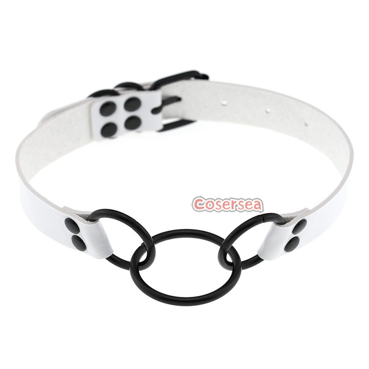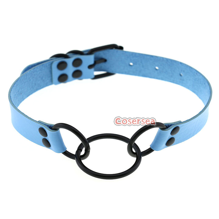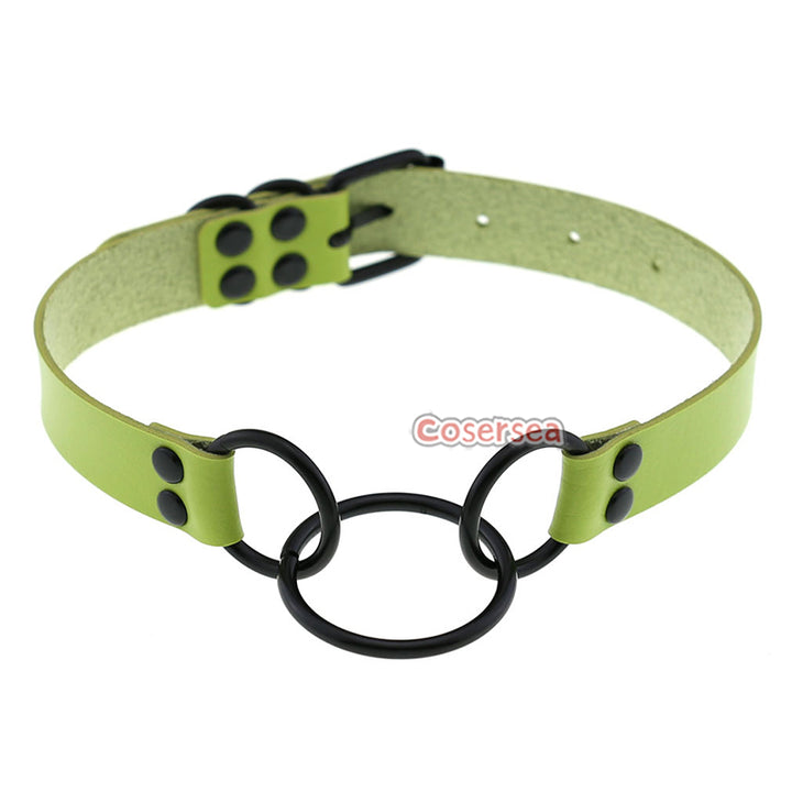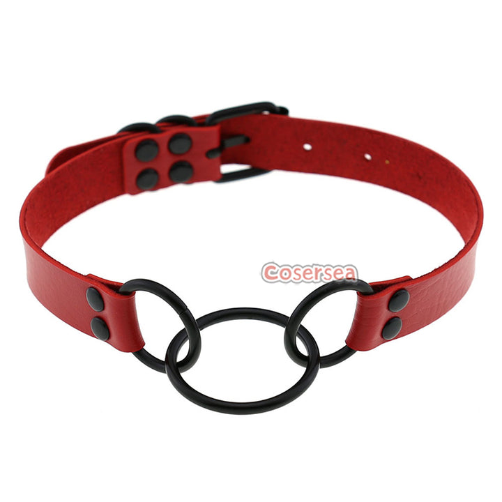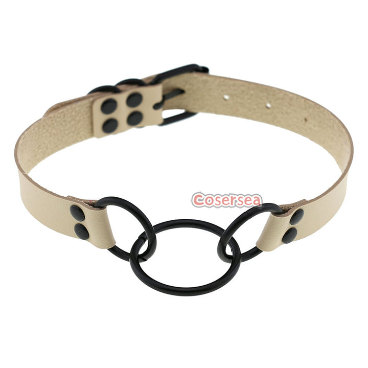 16 Colors Punk Gothic PU Leather Collar Necklace Personalized Metal 3 Ring Choker