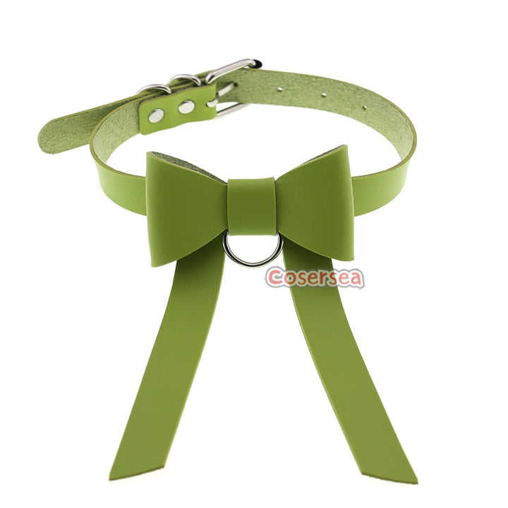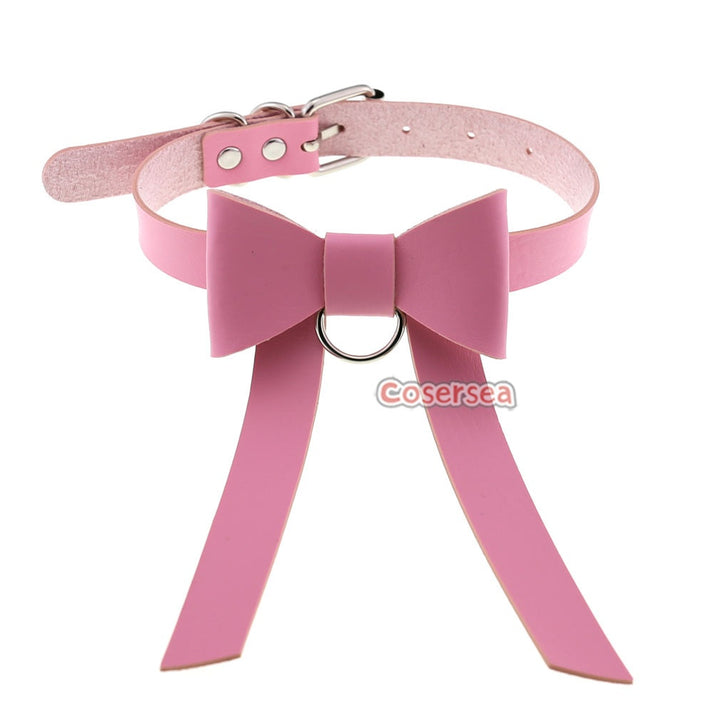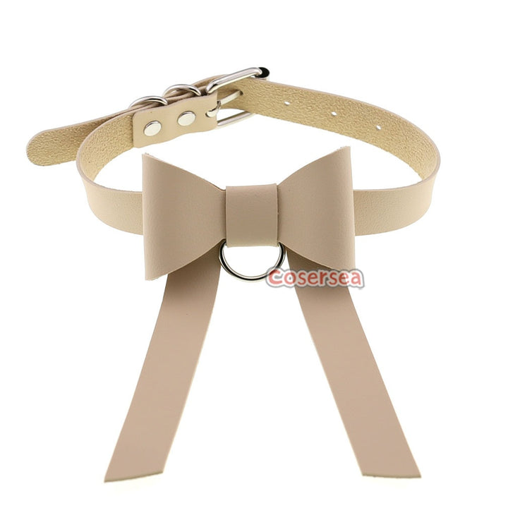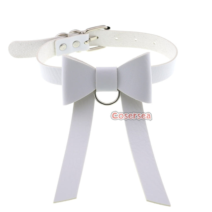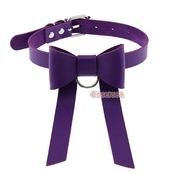 16 Colors Punk Gothic PU Leather Long Bow Collar Neck Chain Half Circle Ring Clavicle Necklace