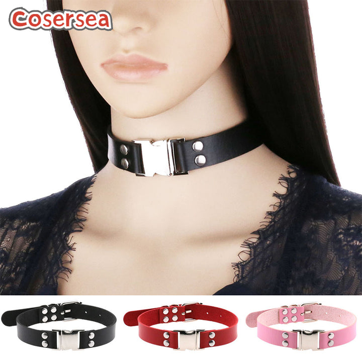 16 Colors Punk Harajuku Buckle PU Leather Collar Neck Strap Collarbone Necklace