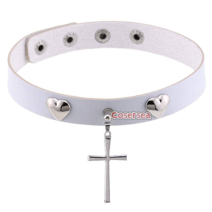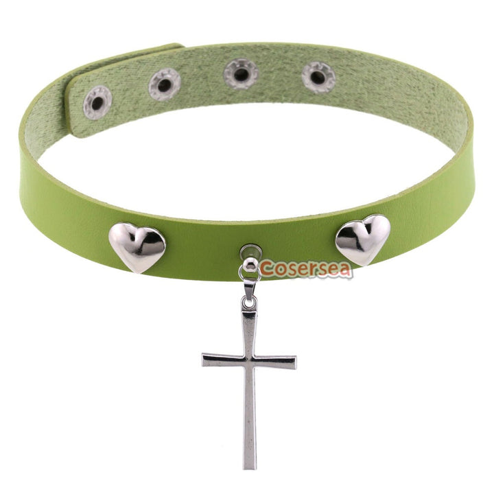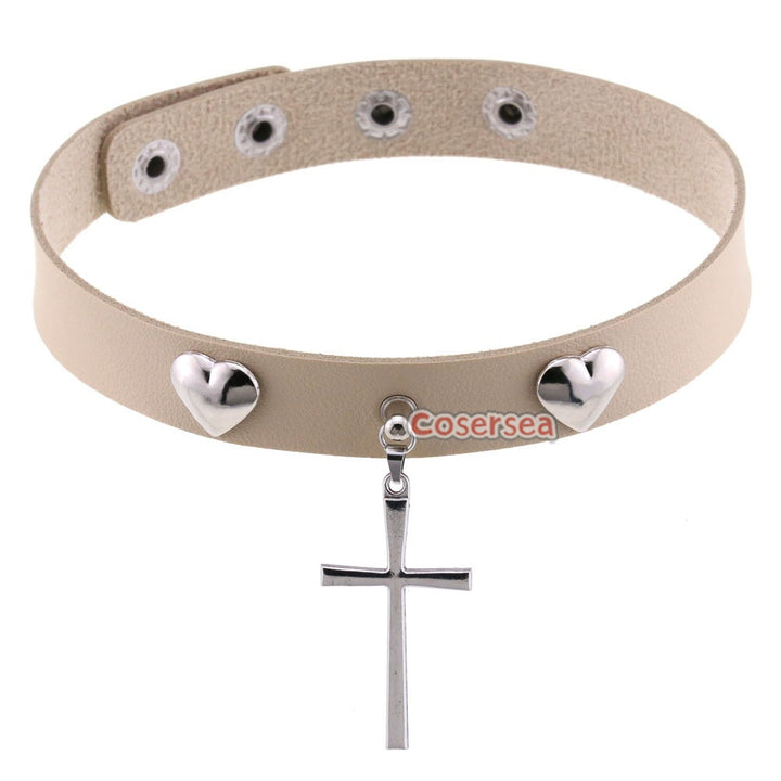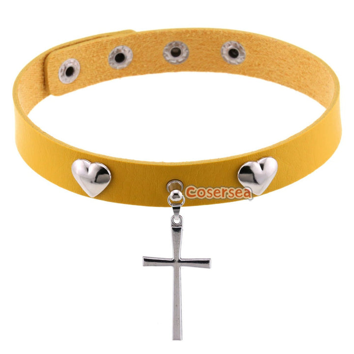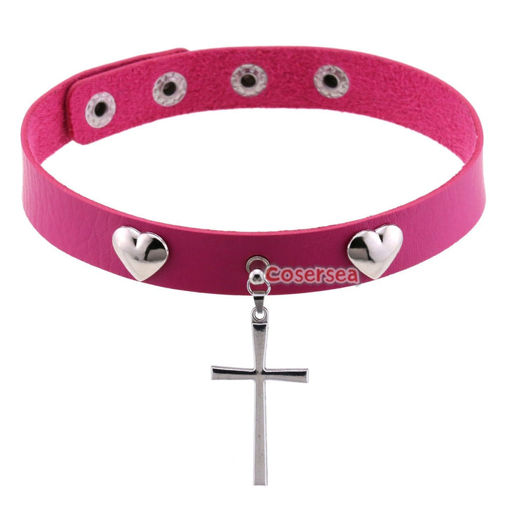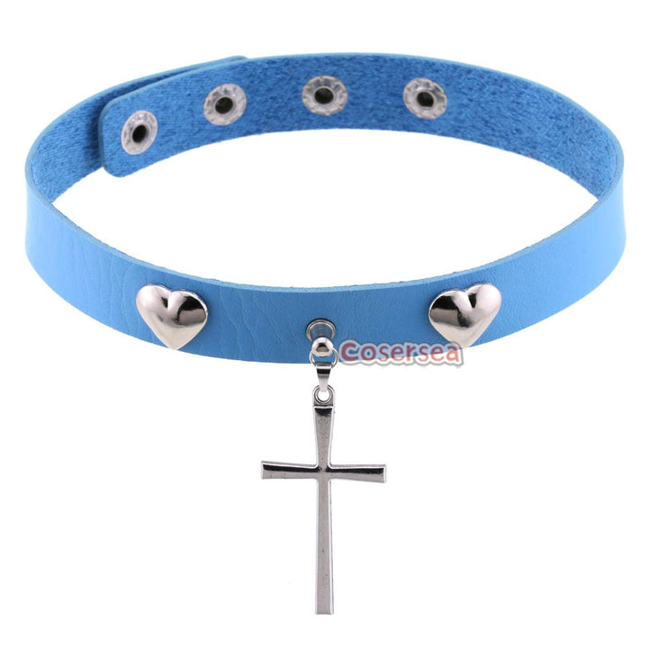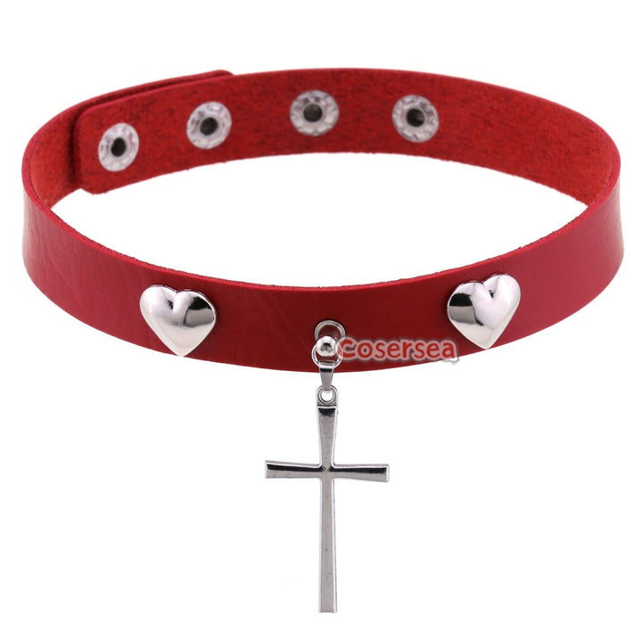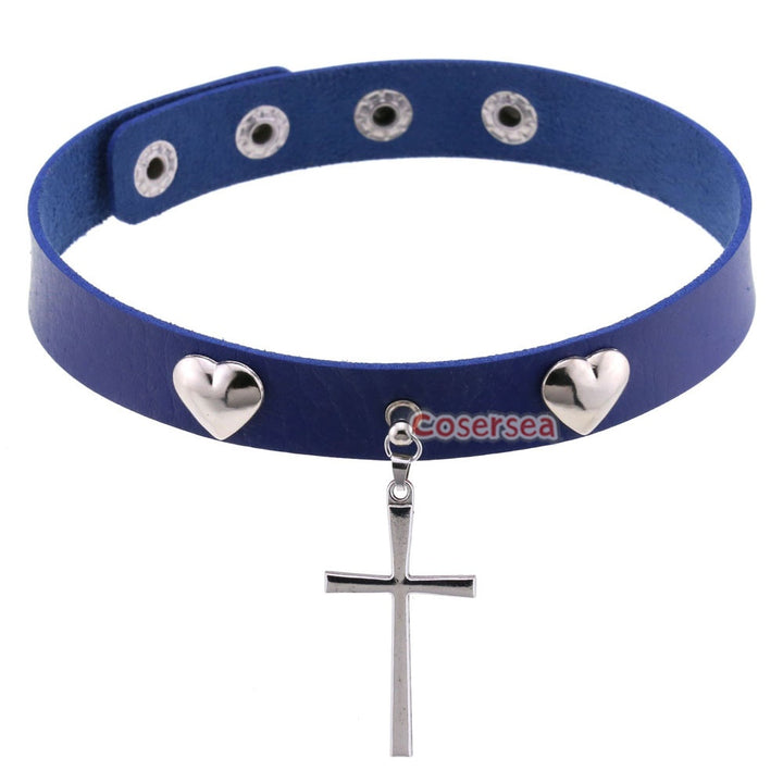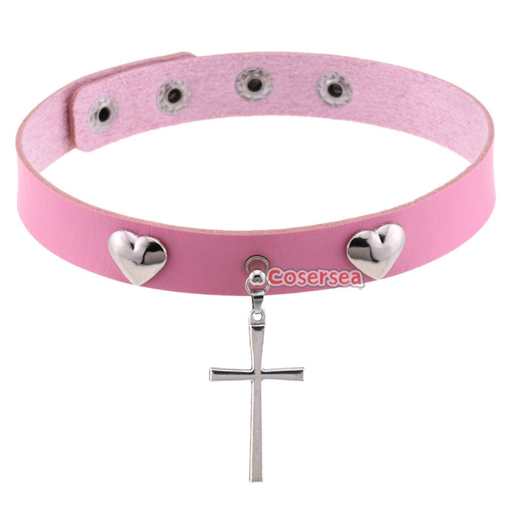 16 Colors Punk Heart Rivet Collar Collarbone Chain Cross Pendant Neck Strap Necklace
