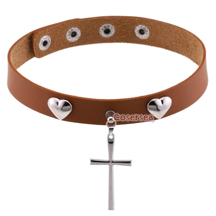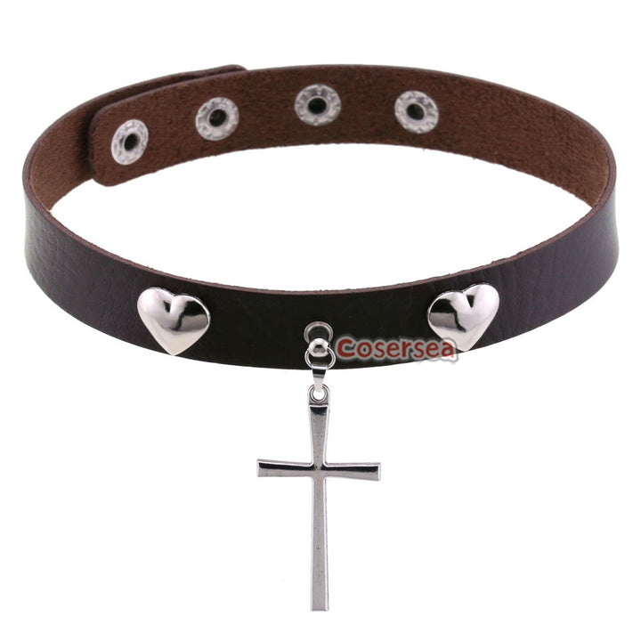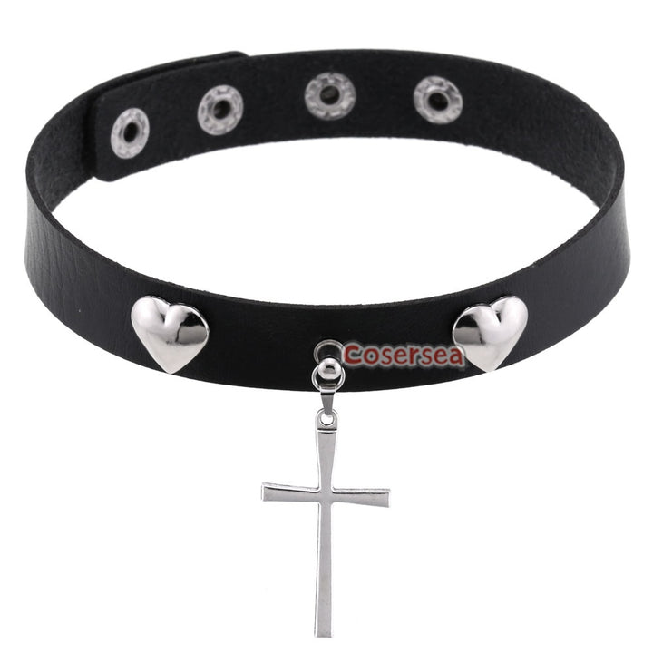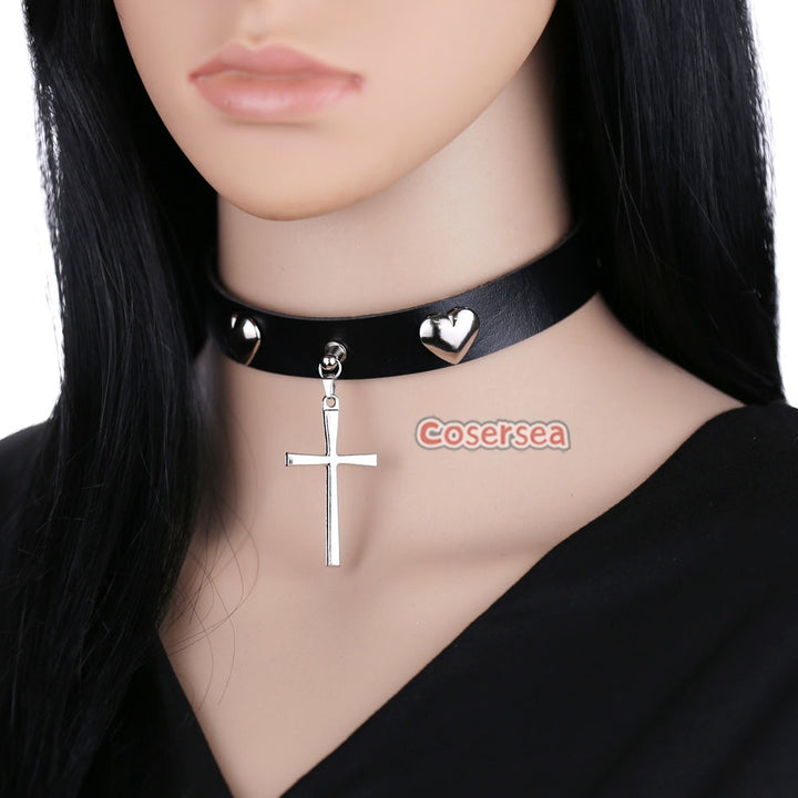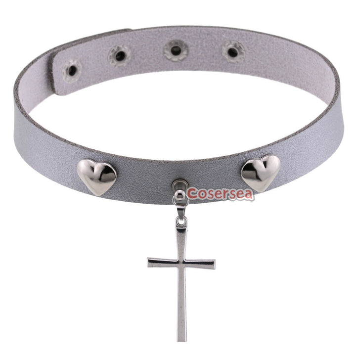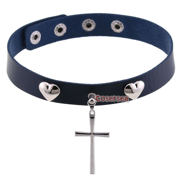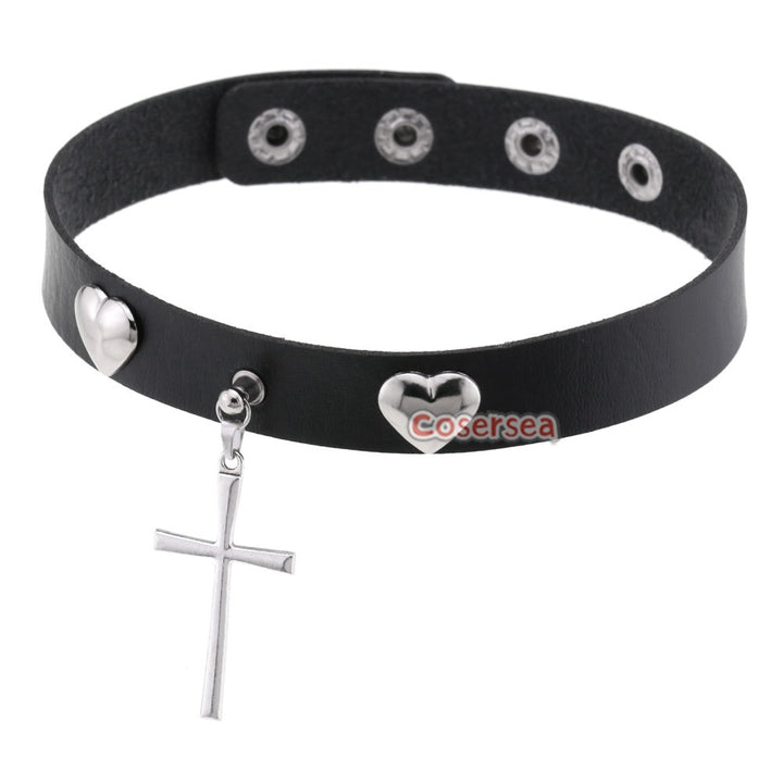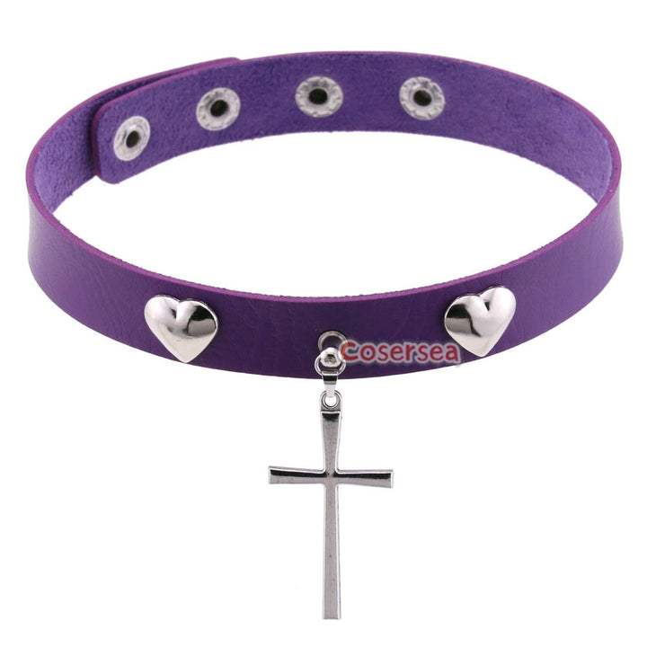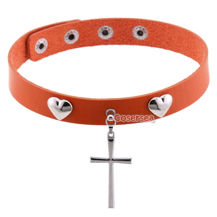 16 Colors Punk Heart Rivet Collar Collarbone Chain Cross Pendant Neck Strap Necklace