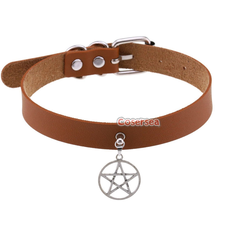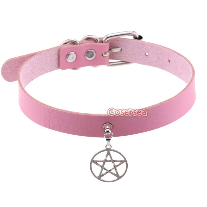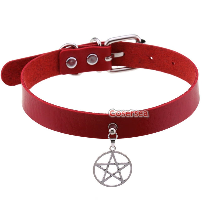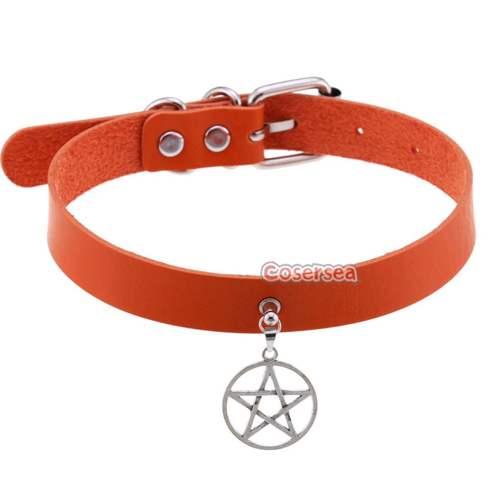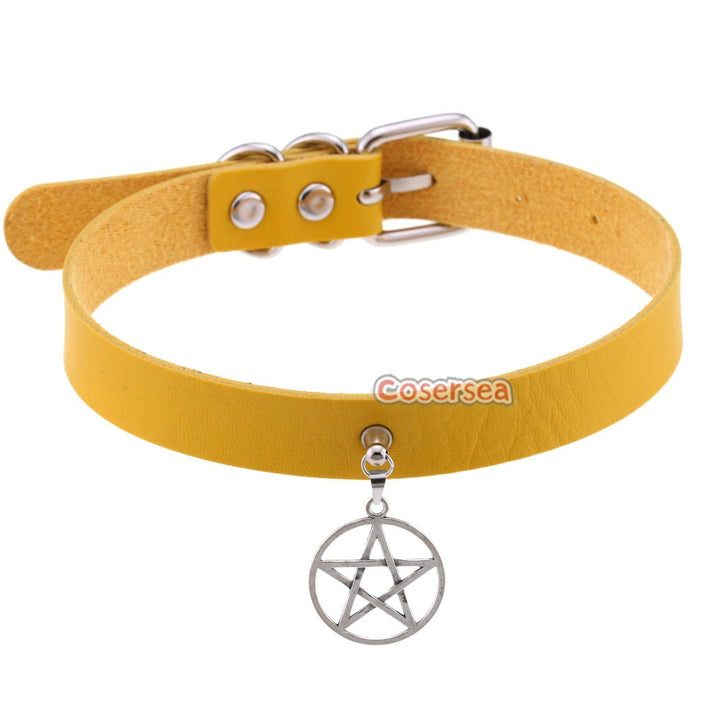 16 Colors Retro Five Pointed Star Pendant Collar PU Leather Collarbone Necklace Neck Strap