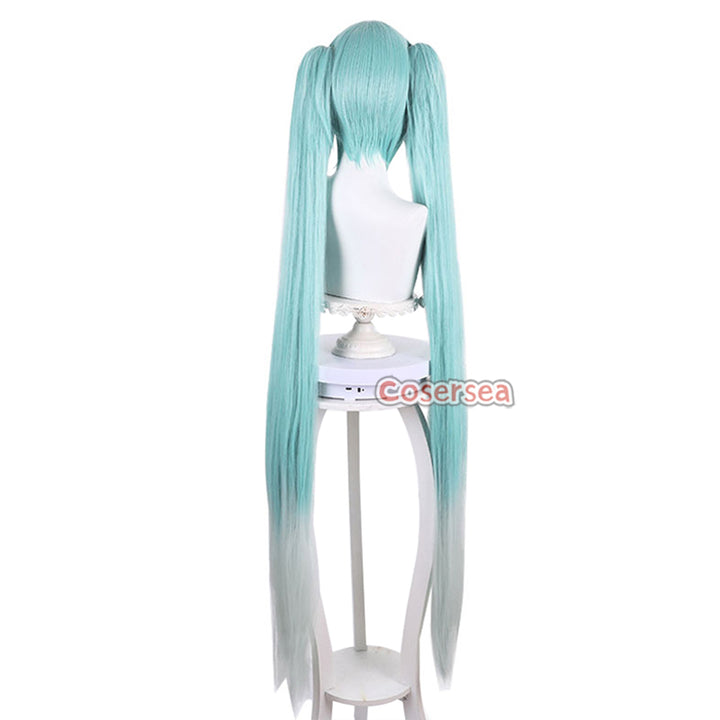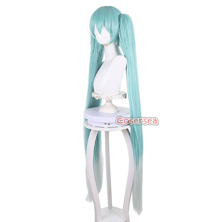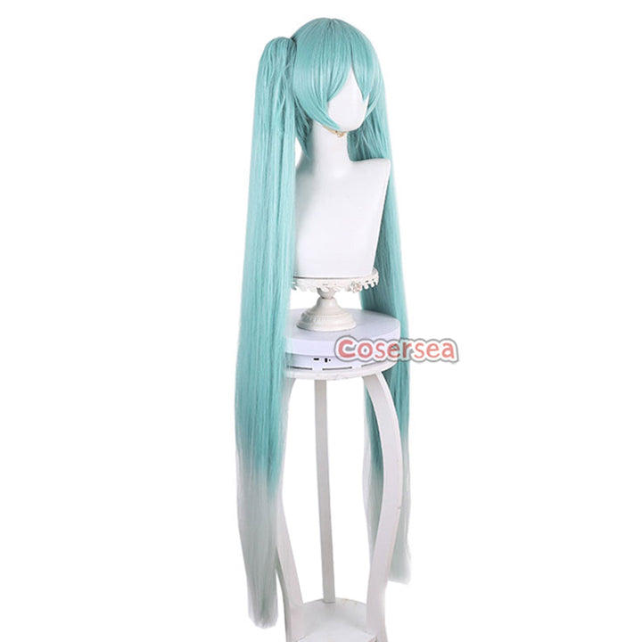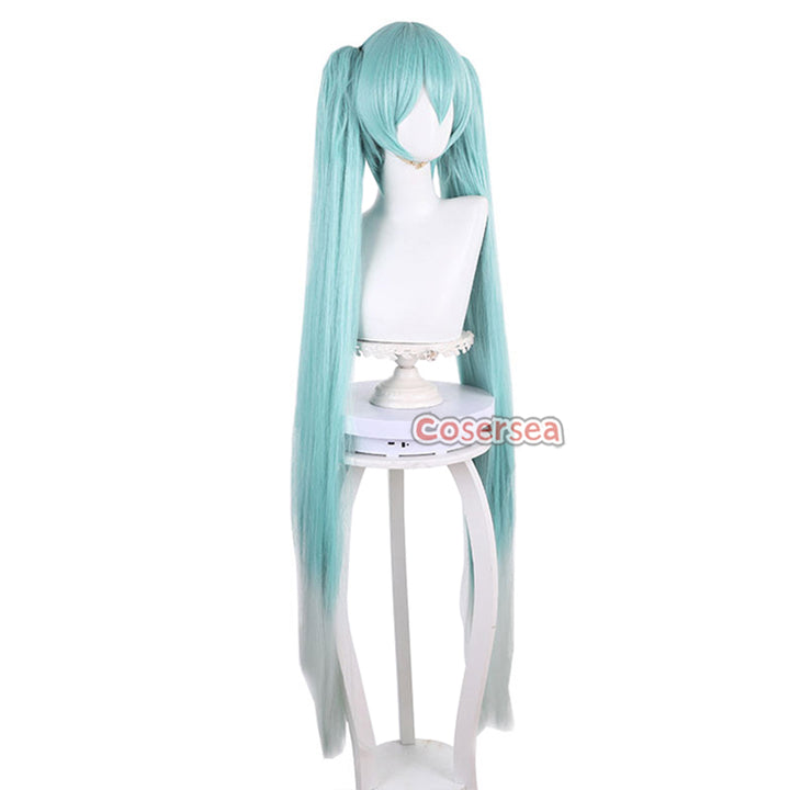 16th Anniversary 120cm Long Green Mixed Grey Ponytail Cosplay Wigs