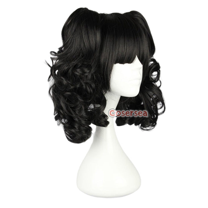 35cm Wavy Black Ponytail Wigs Fashion Anime Trendy Synthetic Hair