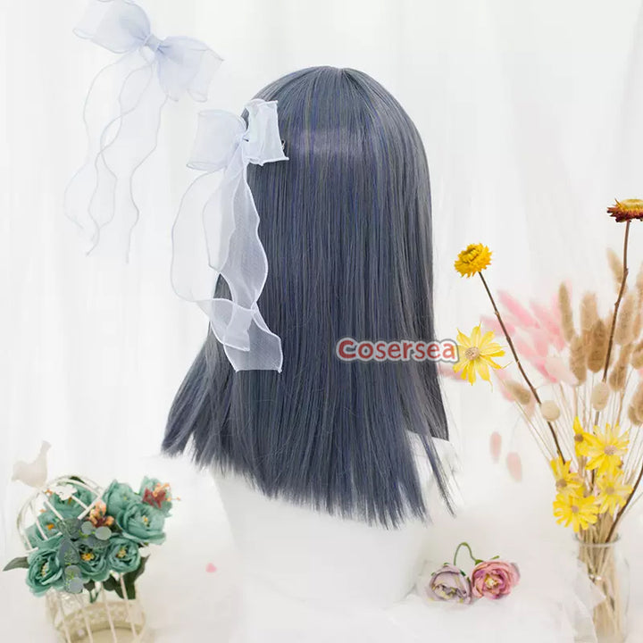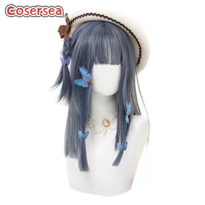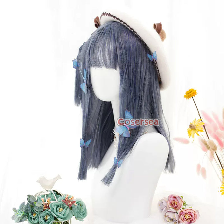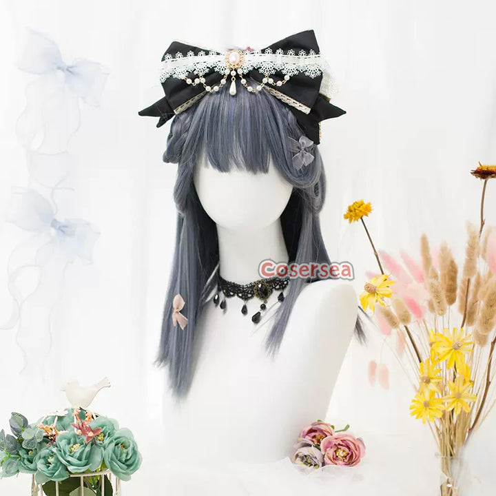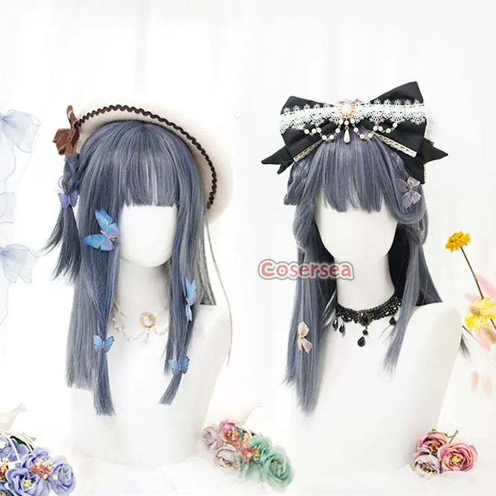 38cm Medium Long Straight Mixed Blue Lolita Wigs