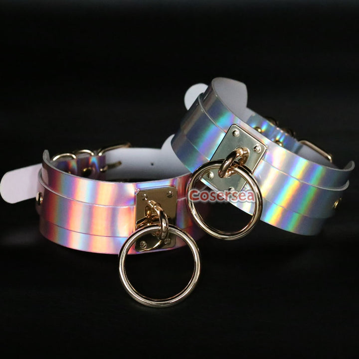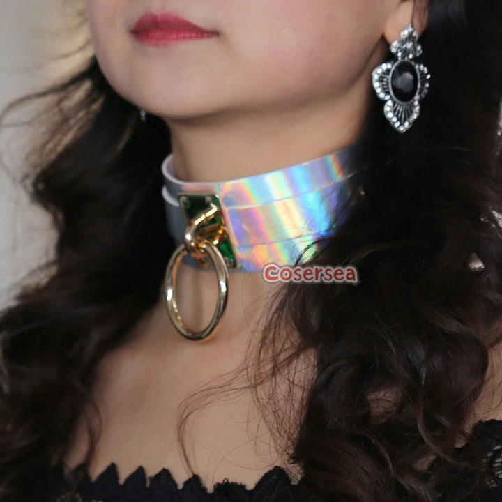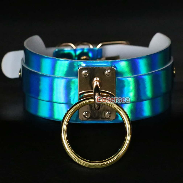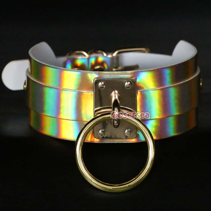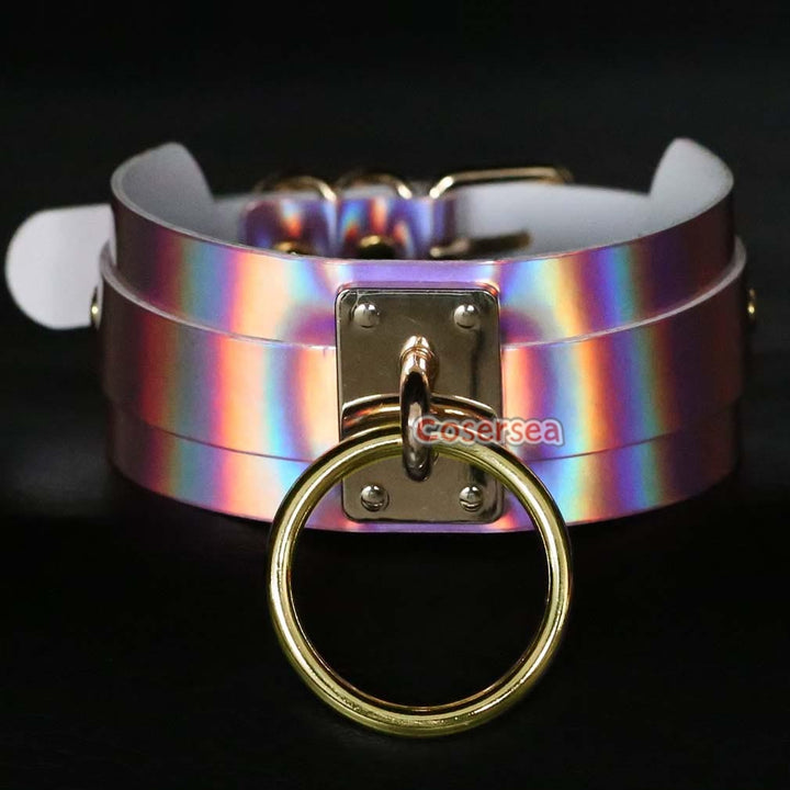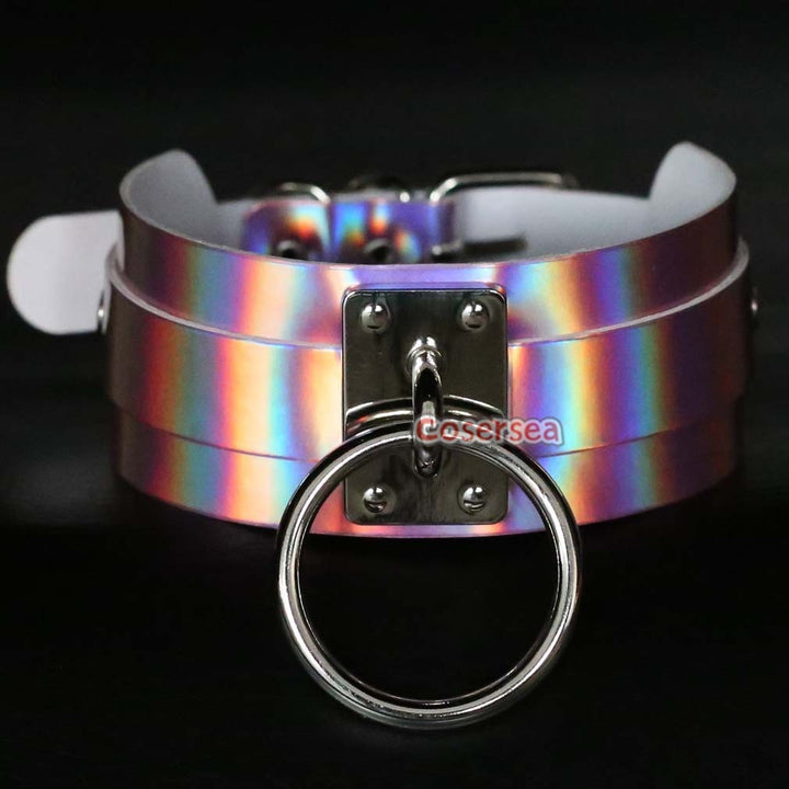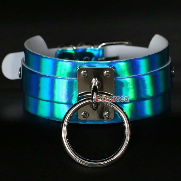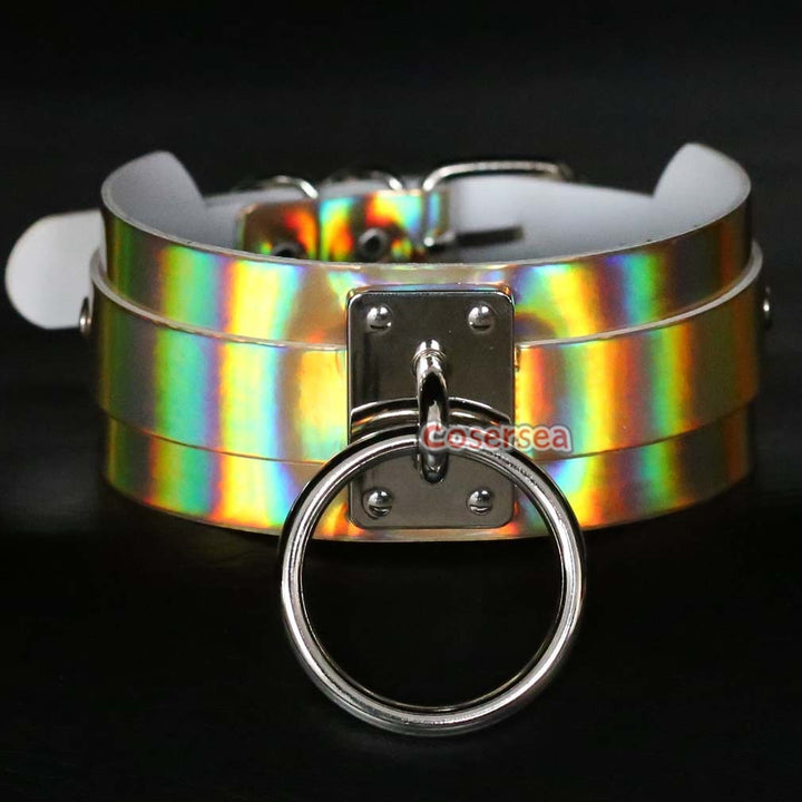 4 Colors Harajuku Nightclub Wide Version Laser Leather Necklace Collar Large Circular Ring Choker