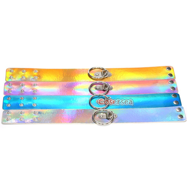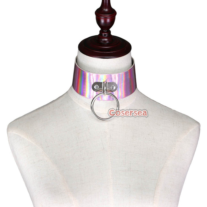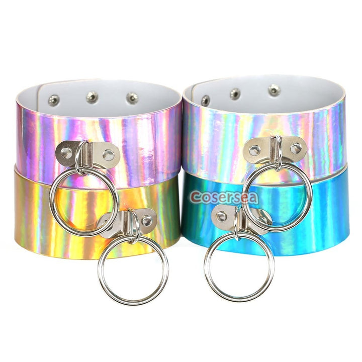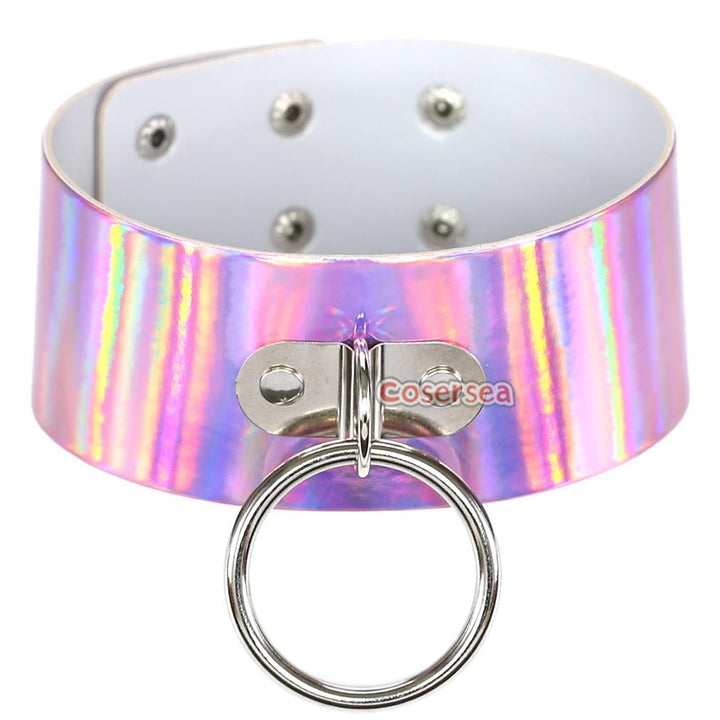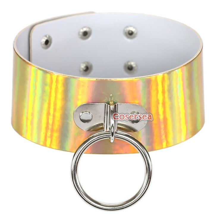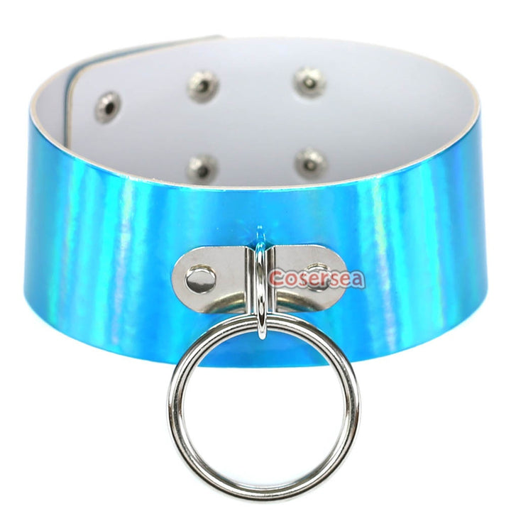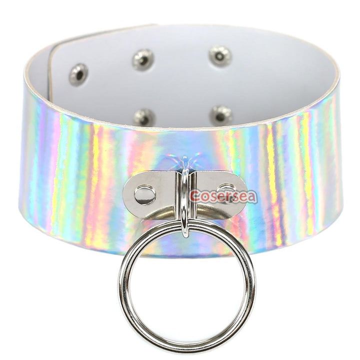 4 Colors Harajuku Style Punk Wide Version Laser Leather Large Circular Necklace Collar Collarbone Chain