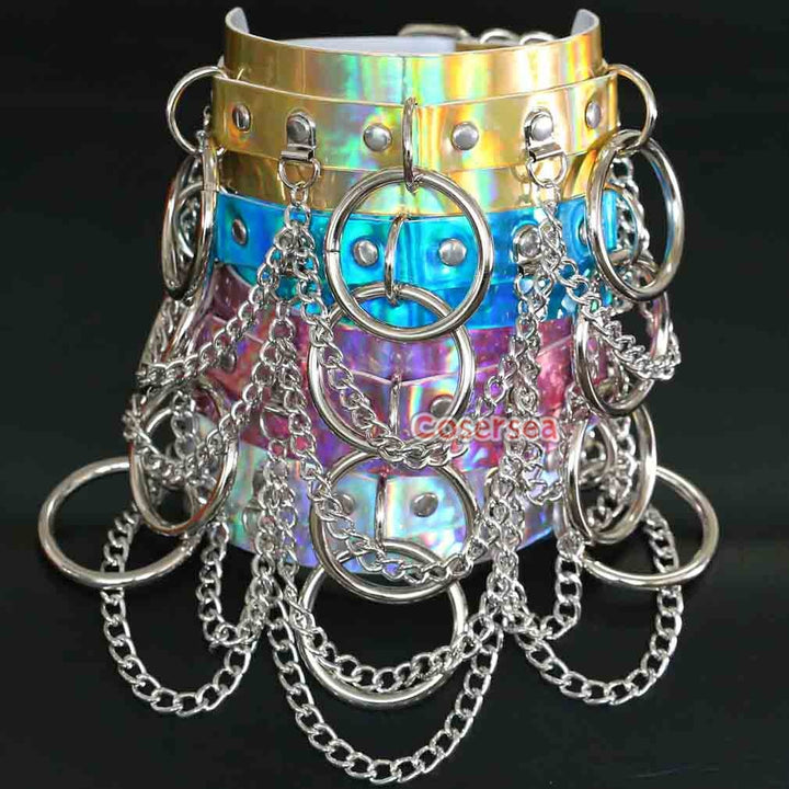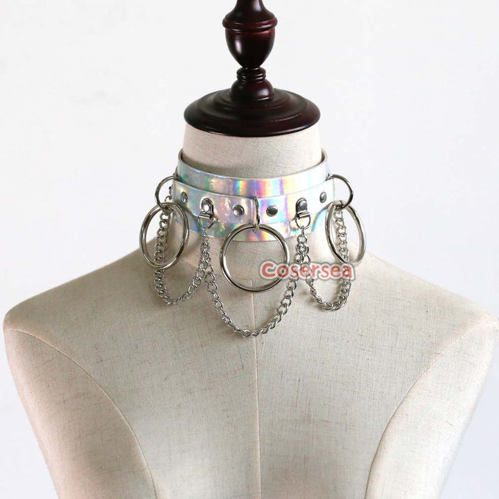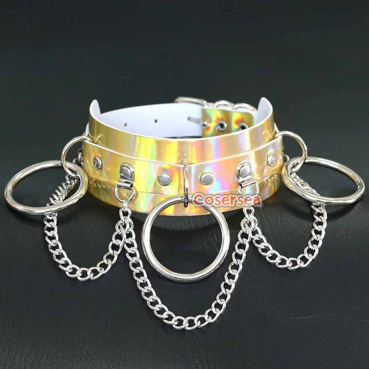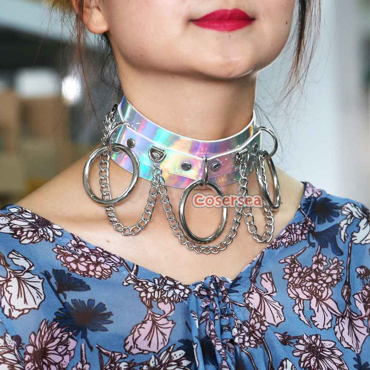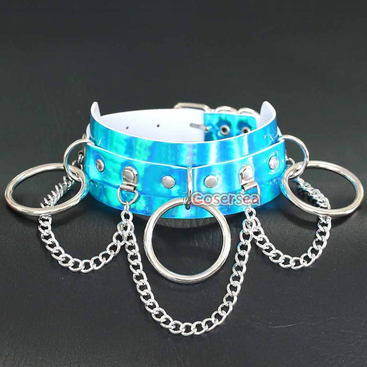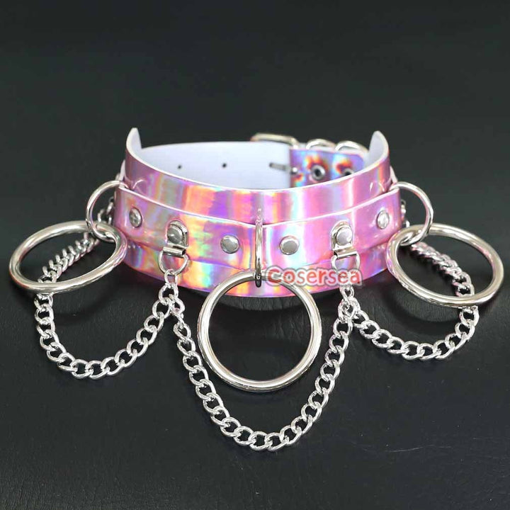 4 Colors Laser Leather Collar Neck Strap Nightclub O-ring Chain Collarbone Necklace Choker