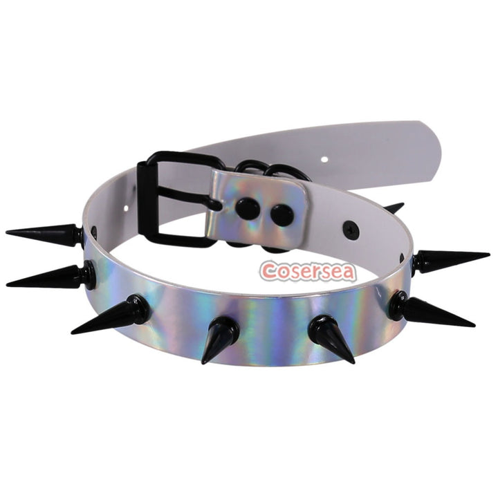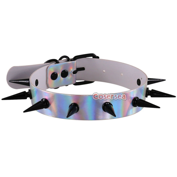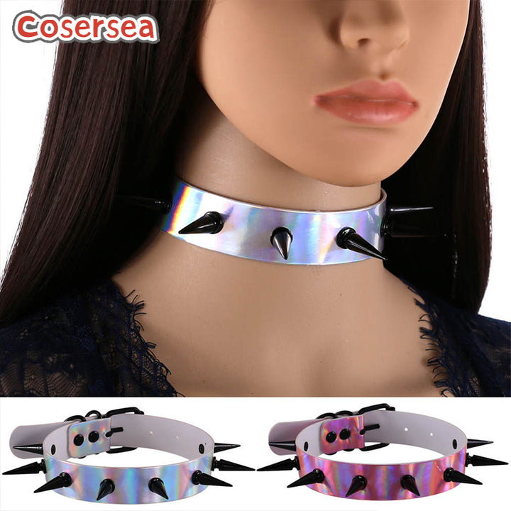 4 Colors Laser Leather Luminous Collar Necklace Nightclub Wild Rivet Pointed Nail Choker