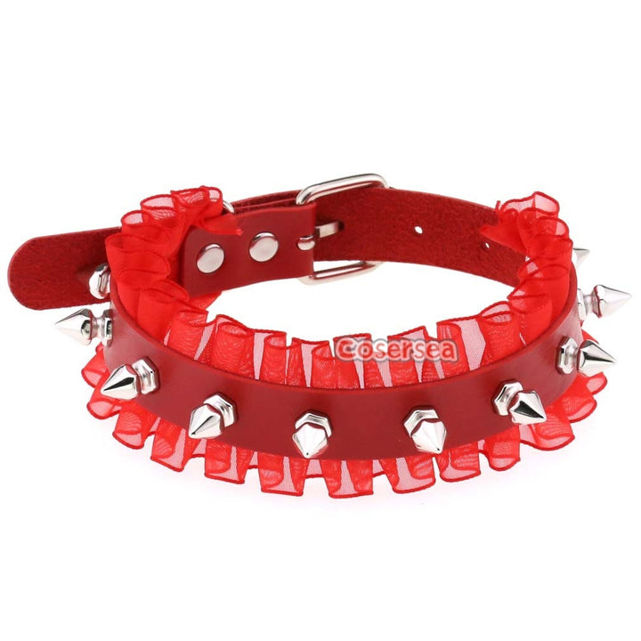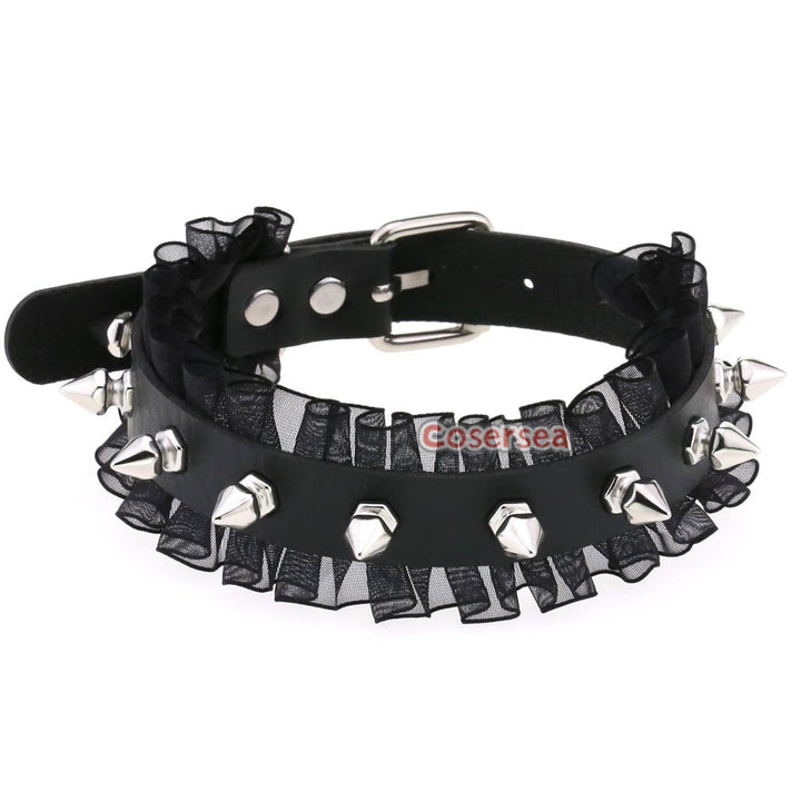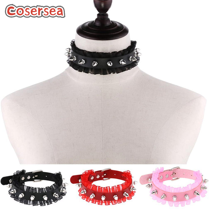 4 Colors Punk Harajuku Lace Rivet Neck Chain Sexy Lace Necklace PU Leather Collar Choker
