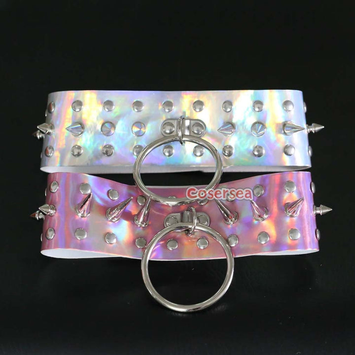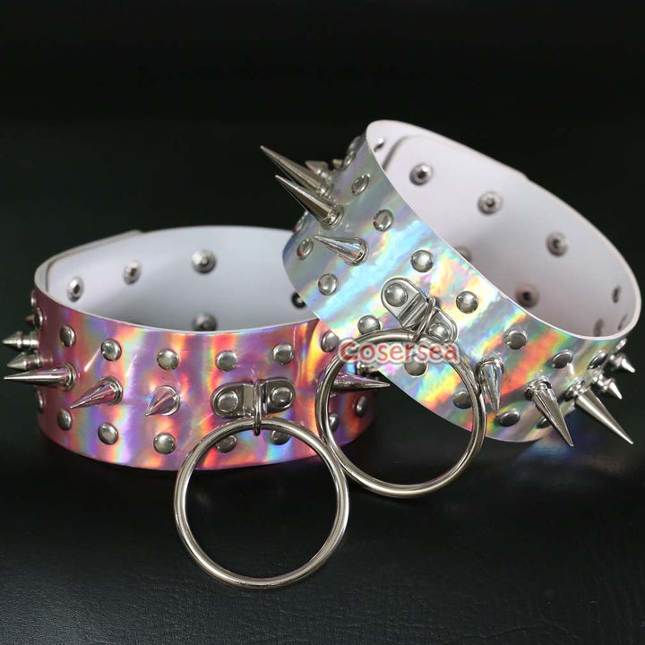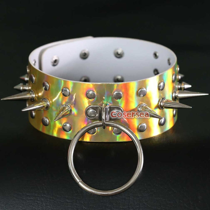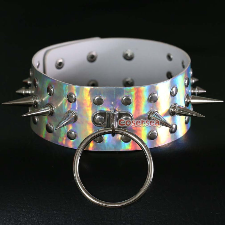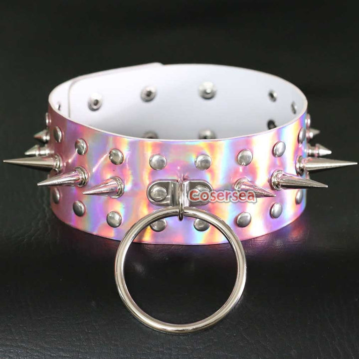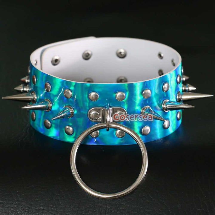 4 Colors Punk Style Pointed Nail Rivet Neck Tie Necklace Nightclub Bar Luminous Laser Leather Choker
