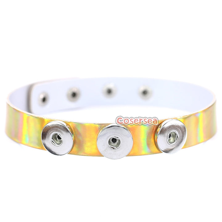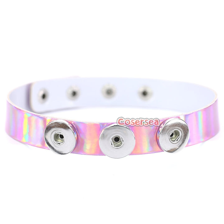 4 Colors Punk Style Snap Button Laser Leather Luminous Collar Neck Chain Choker