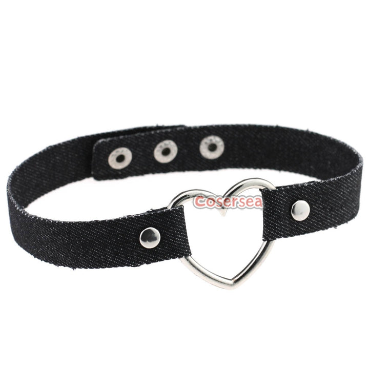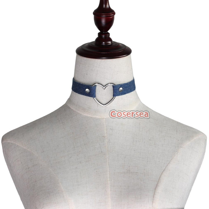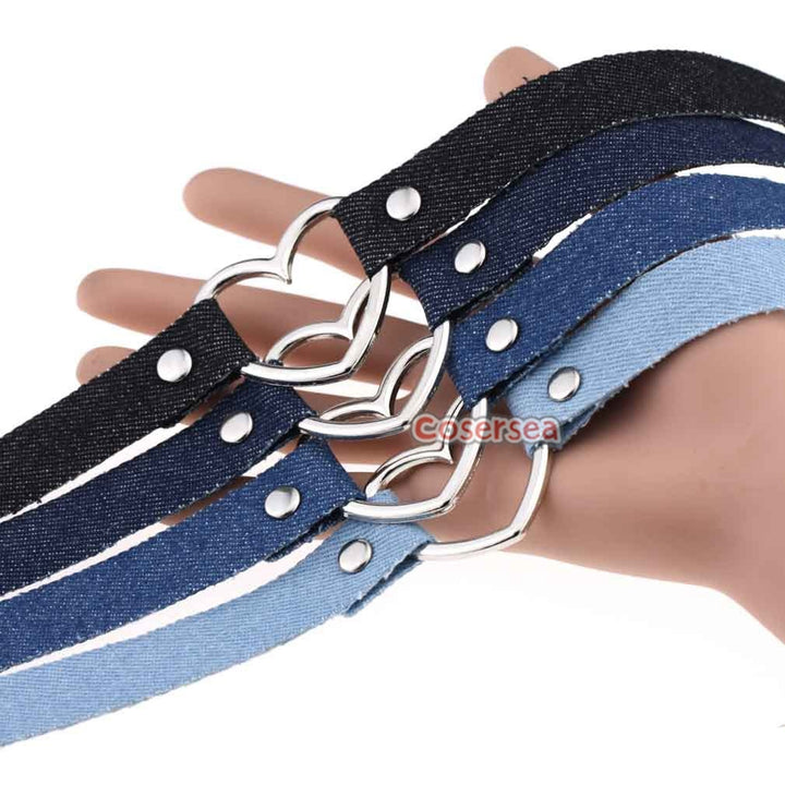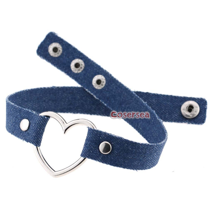 4 Colors Retro Personalized Denim Necklace Heart-shaped Collar Women's Neck Strap Choker