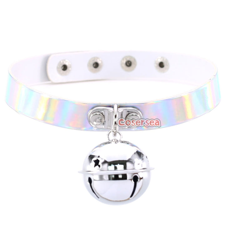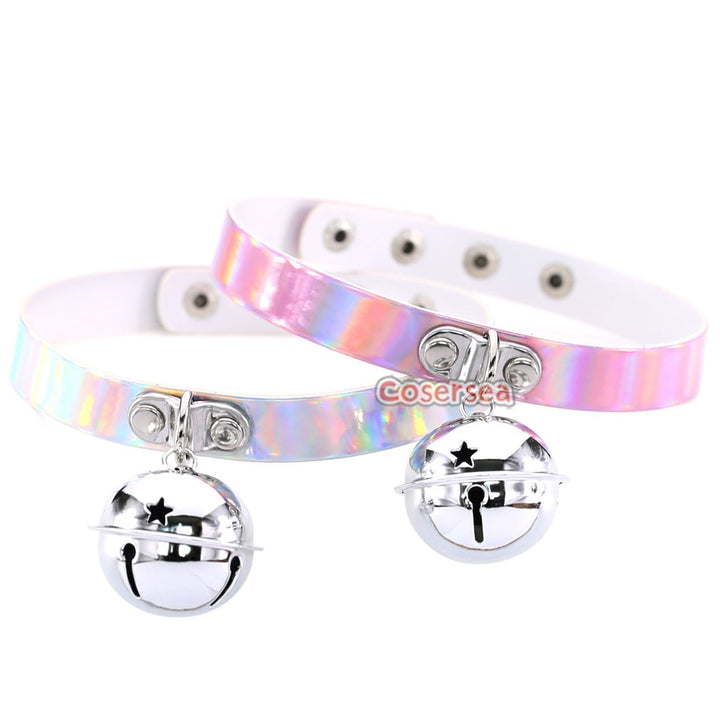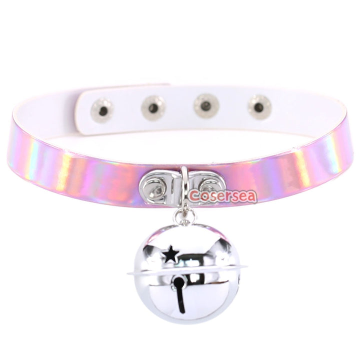 4 Colors Retro Punk Laser Leather Bell Pendant Collar Necklace Women's Short Choker