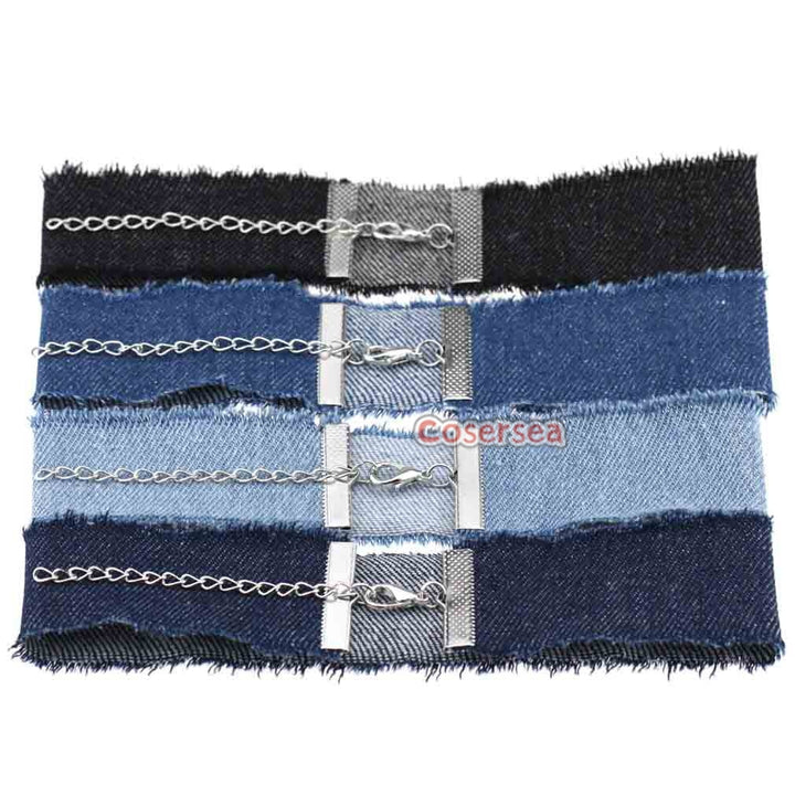 4 Colors Retro Single-layer Frayed Edge Punk Denim Collarbone Necklace Neck Chain