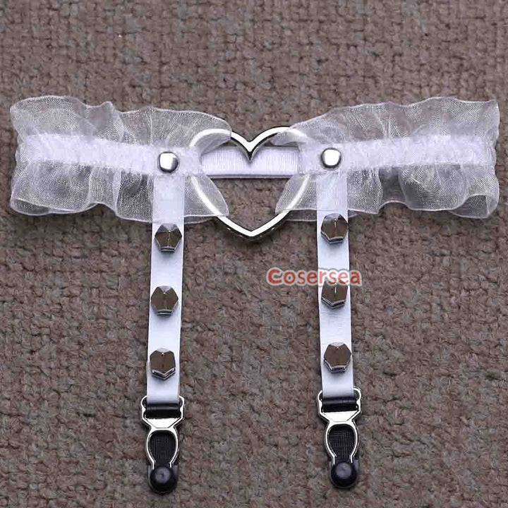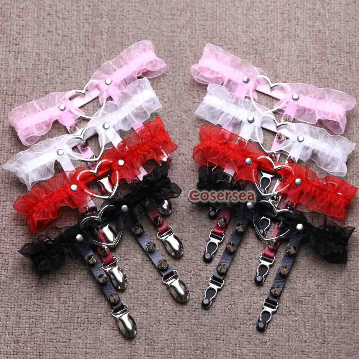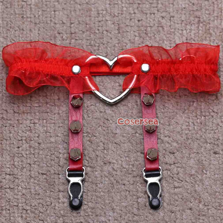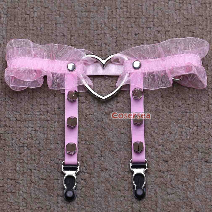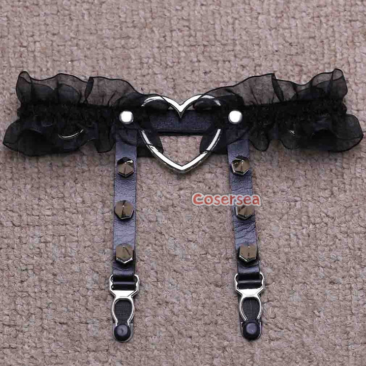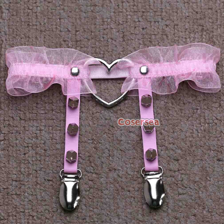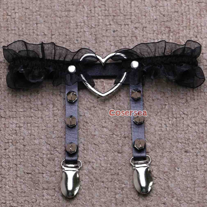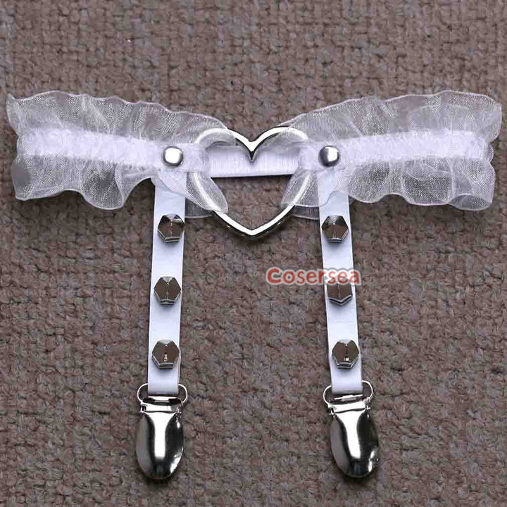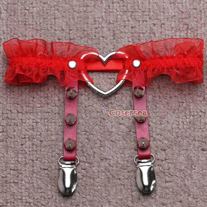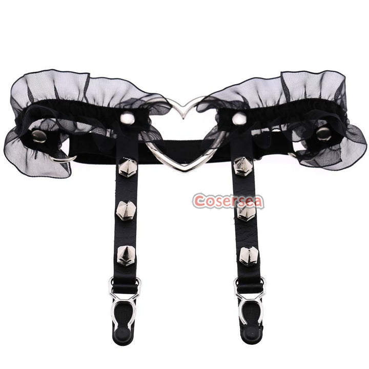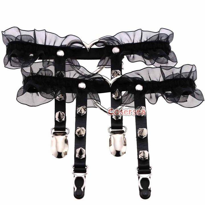 4 Colors Sexy Heart Garter Belt Nightclub Bar PU Leather Rivet Leg Circle Garter Clips