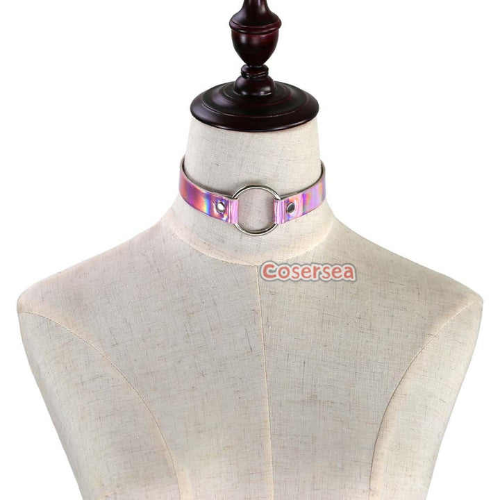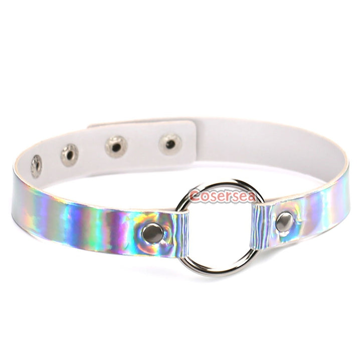 4 Colors Trendy Punk Laser Leather Ring Collar Necklace Collarbone Chain