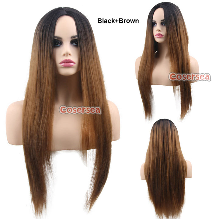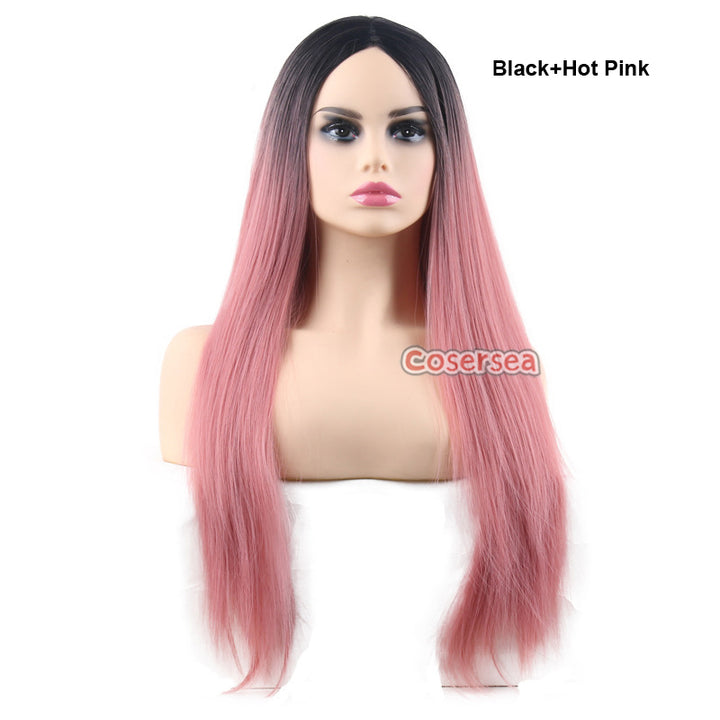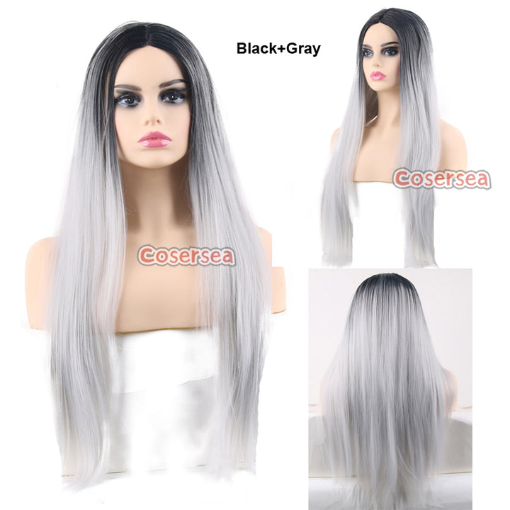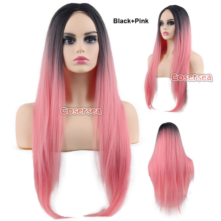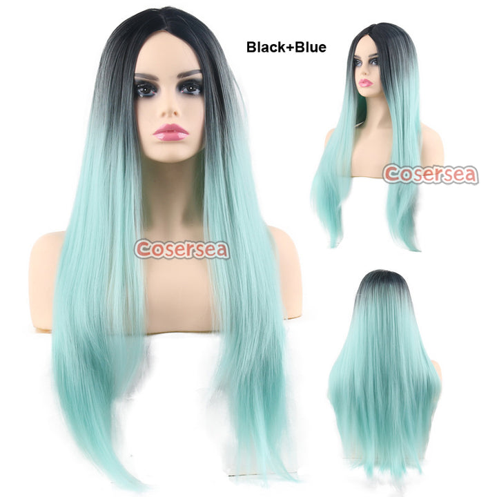 6 Colors 60cm Long Straight Black Gradient Cosplay Wigs Trendy Anime Fashion Wigs
