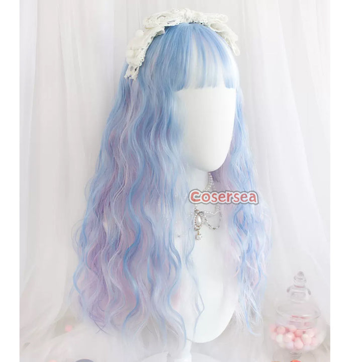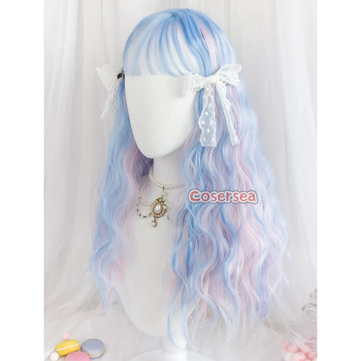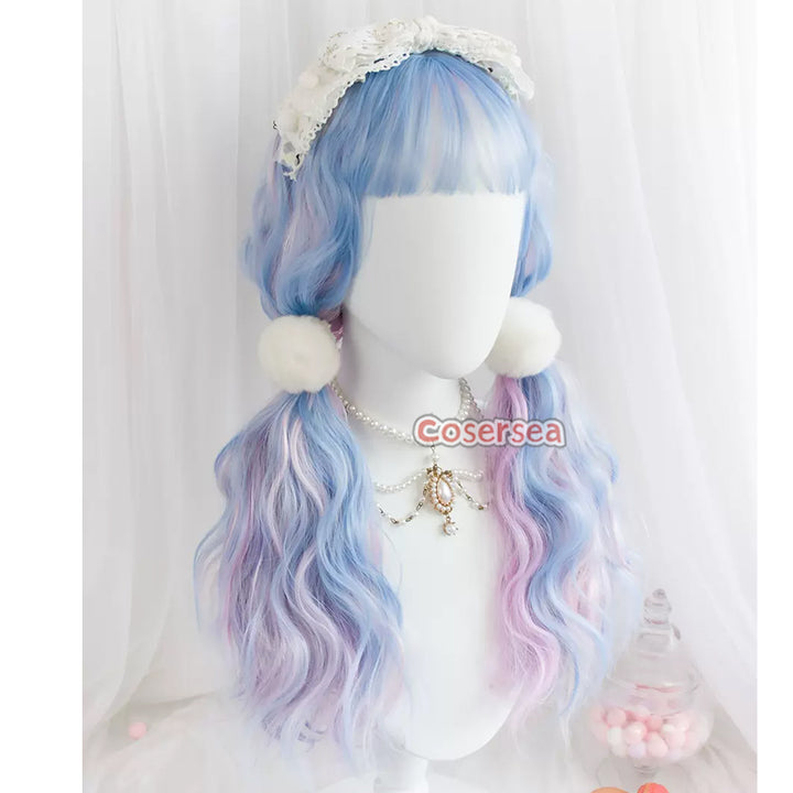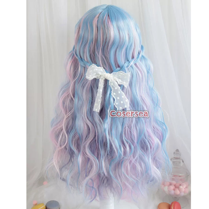62cm Long Loose Wavy Blue Mixed Pink Lolita Wigs