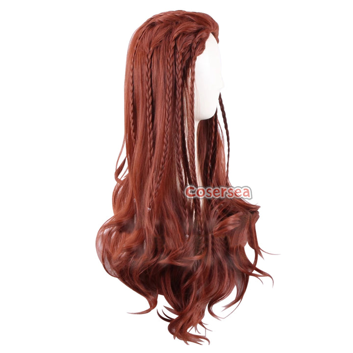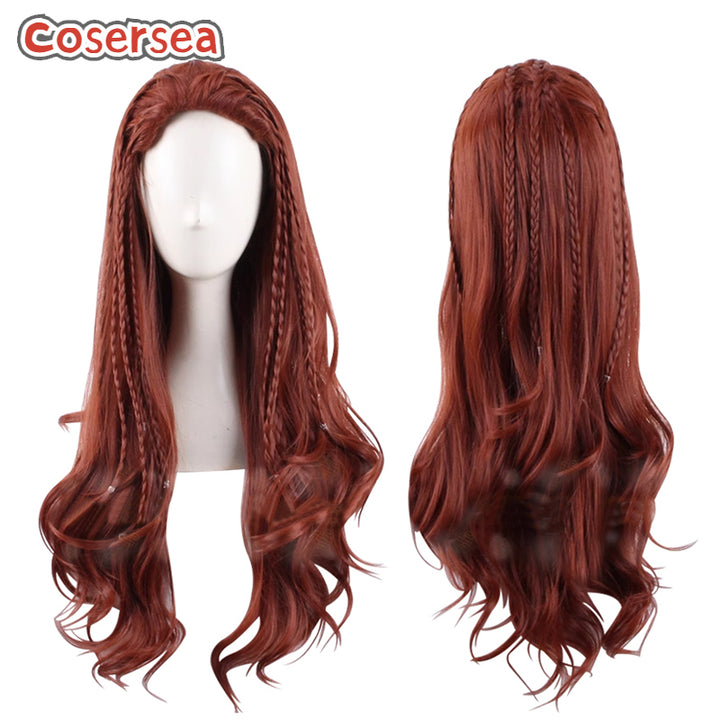 75cm Women Long Wavy Red Brown Braided Cosplay Wigs