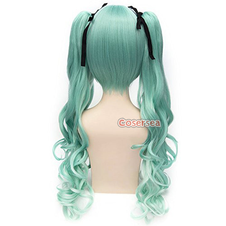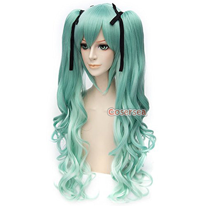 80cm Green Gradient Curly Ponytail Wigs With Bangs