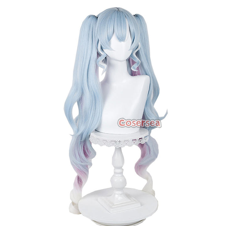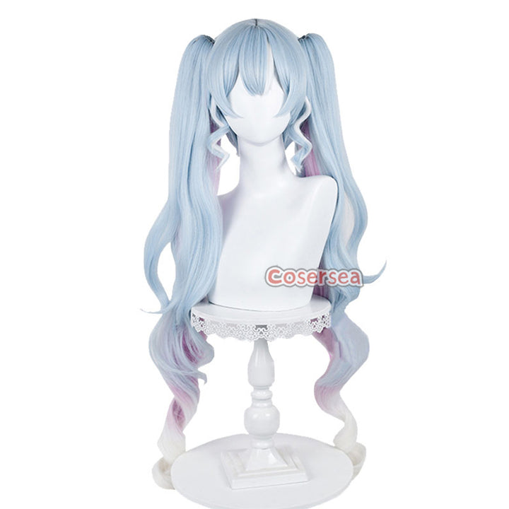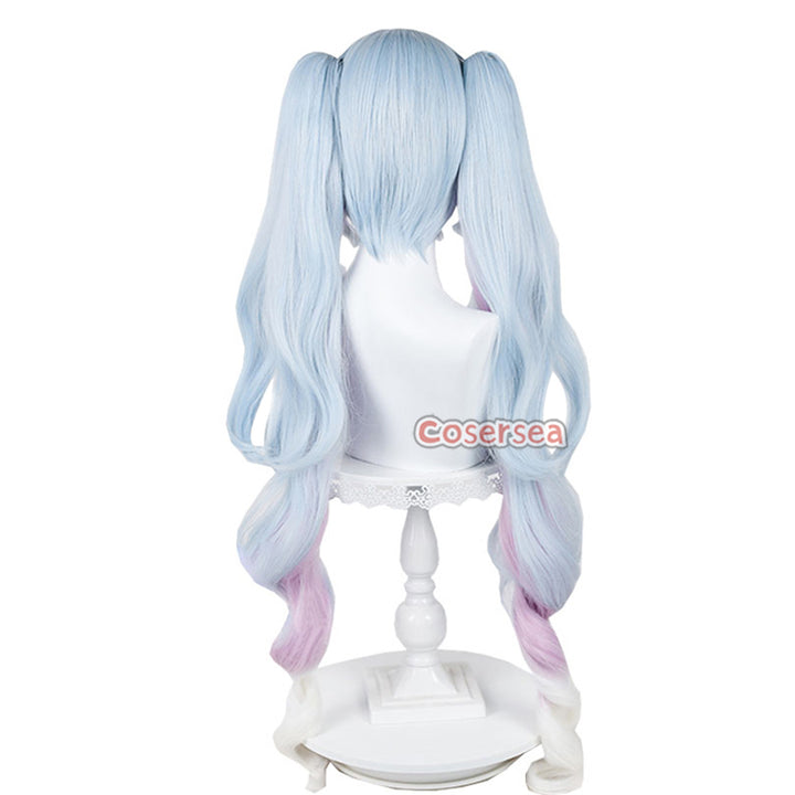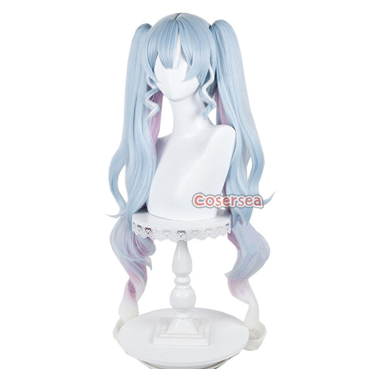 90cm Long Curly Light Blue Mixed Pink White Ponytail Wigs