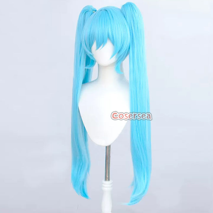 90cm Long Straight Light Blue Ponytail Cosplay Wigs